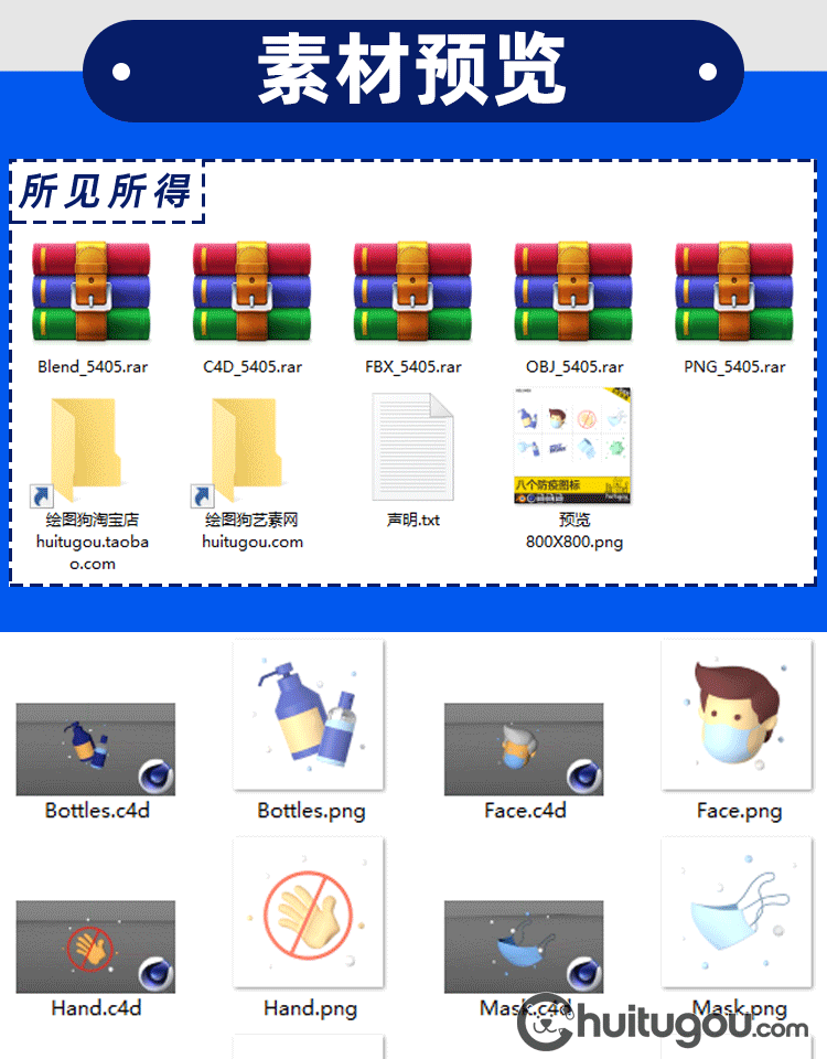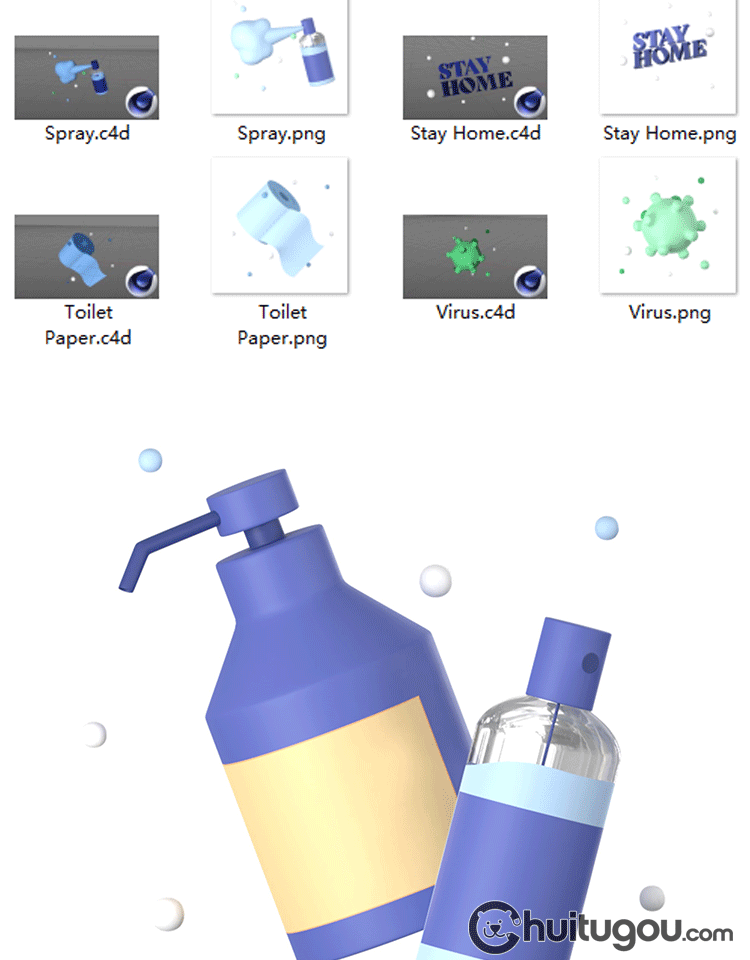 3D医学防疫图标ICON模型附png C4D消毒居家病毒禁止触摸标志OBJ