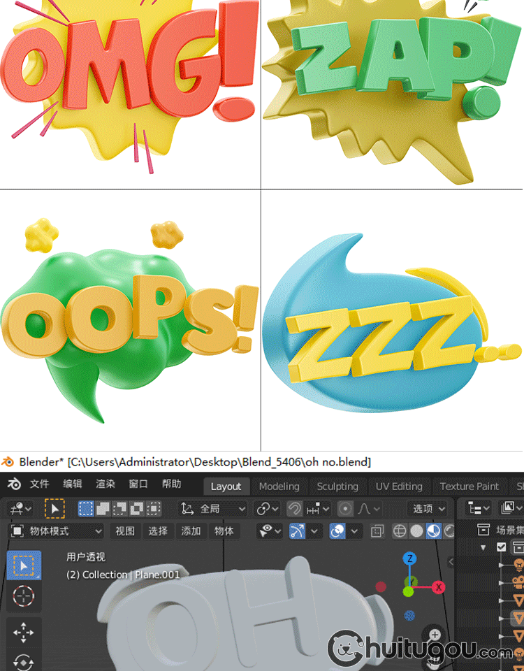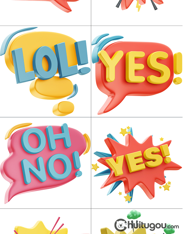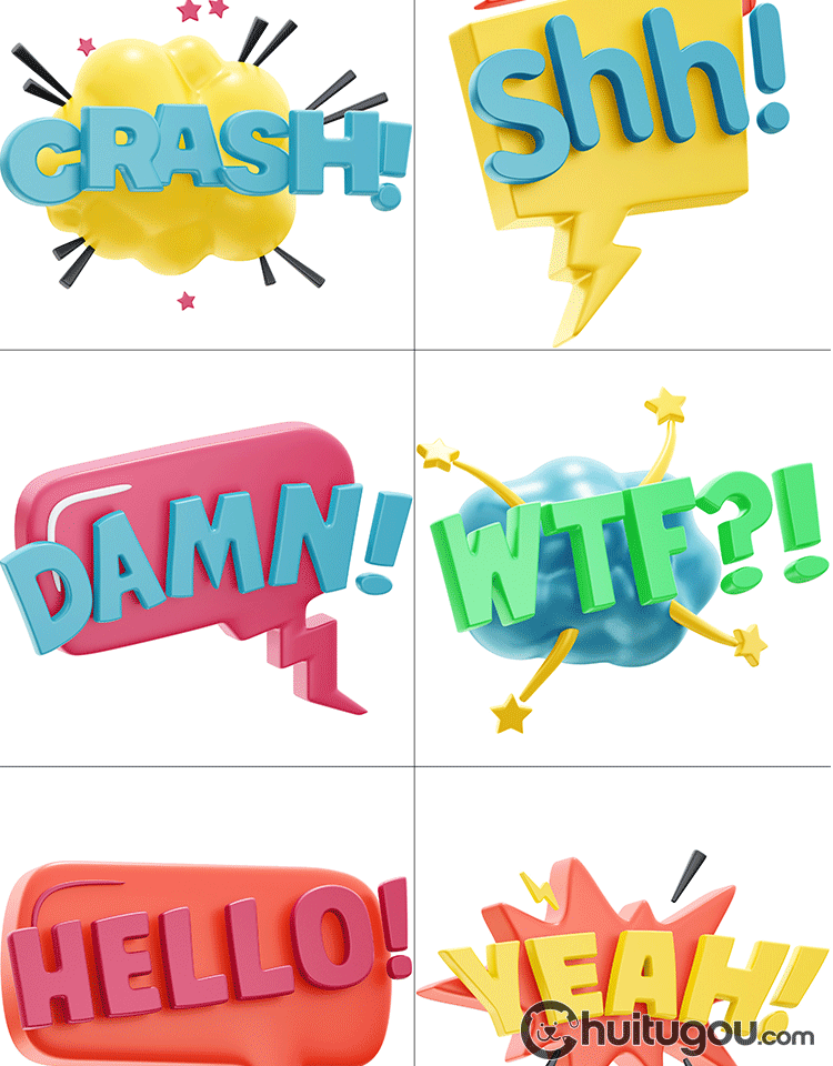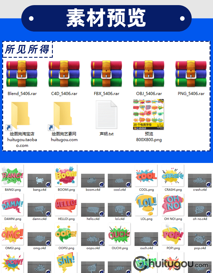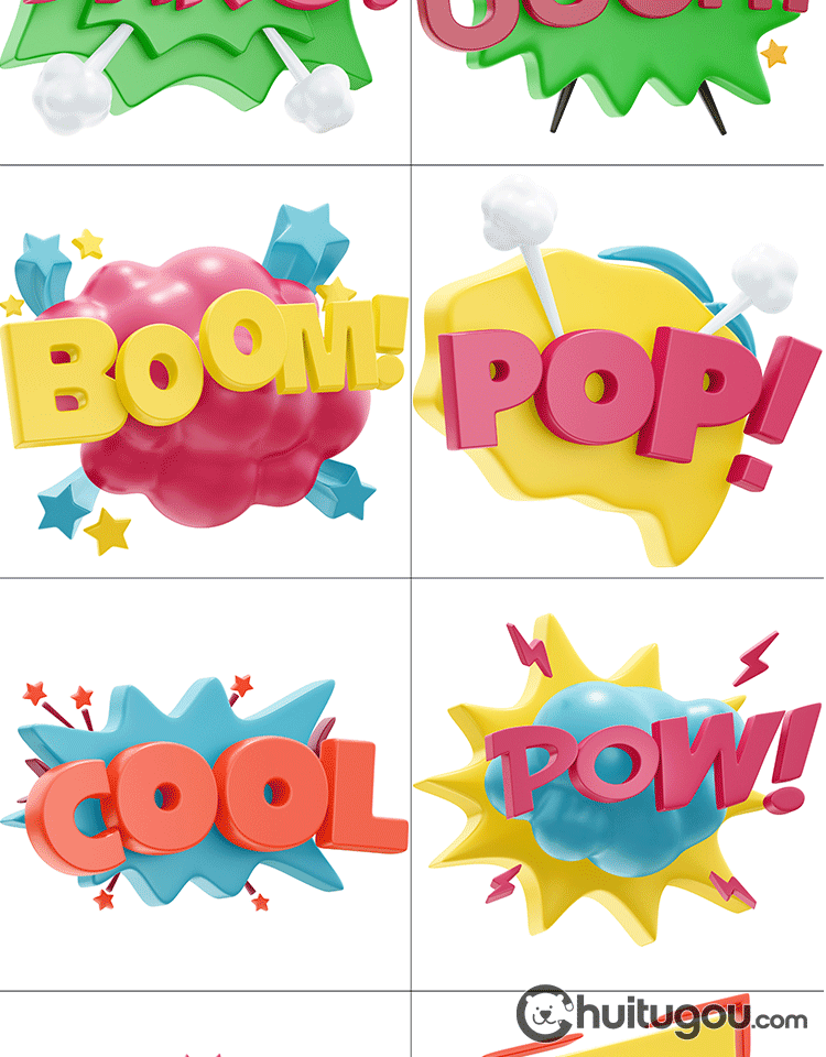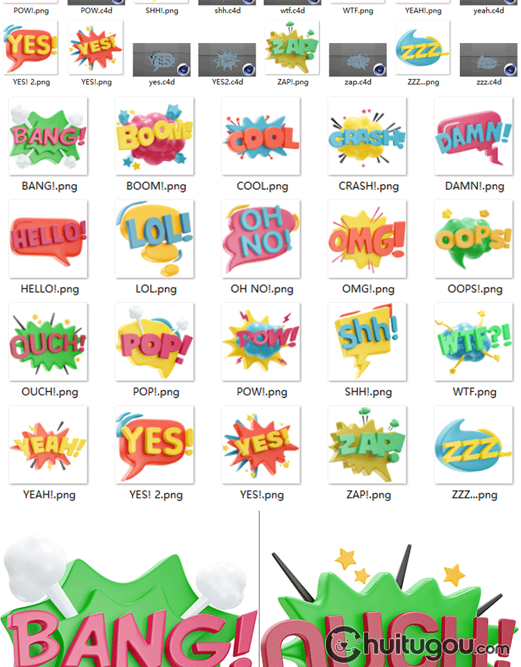 电商促销3D图标模型附png C4D可爱立体ICON字母爆炸提示标语Blend