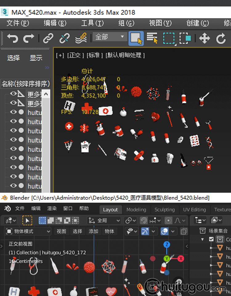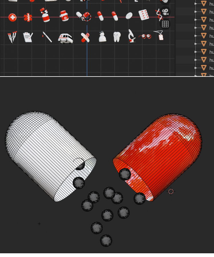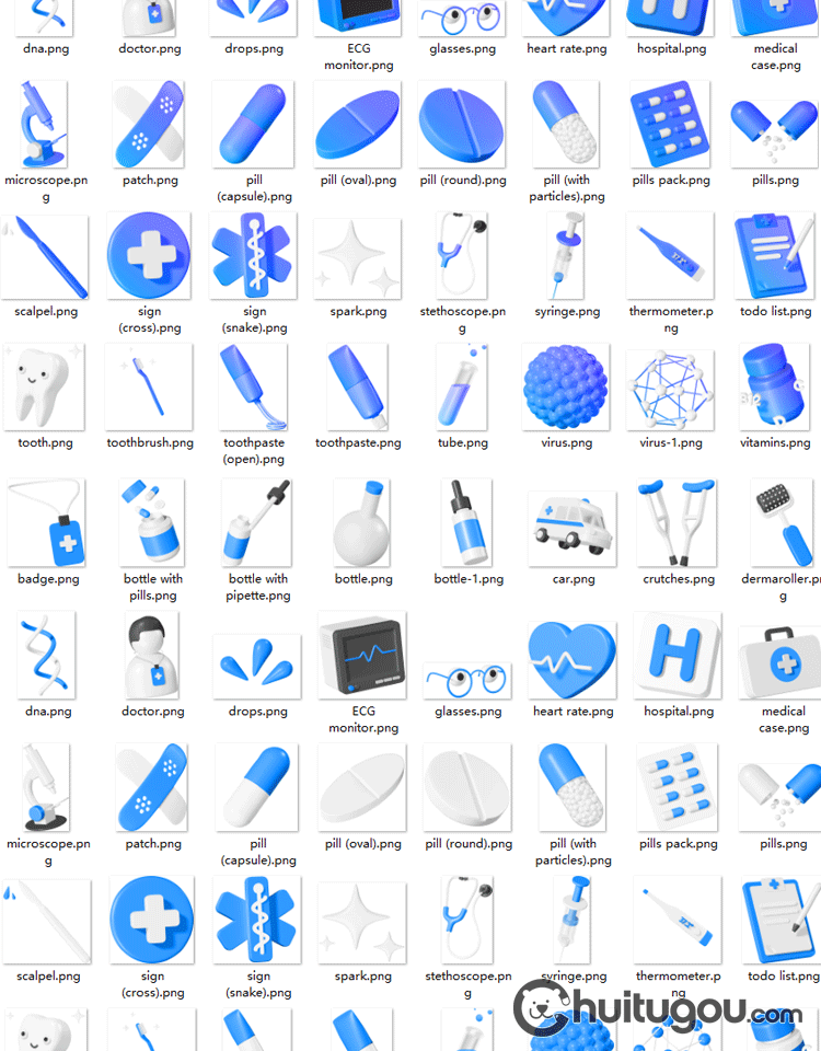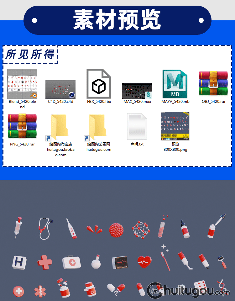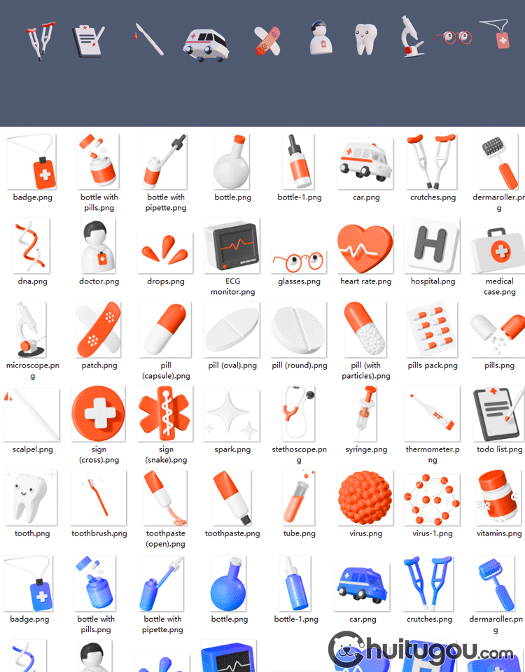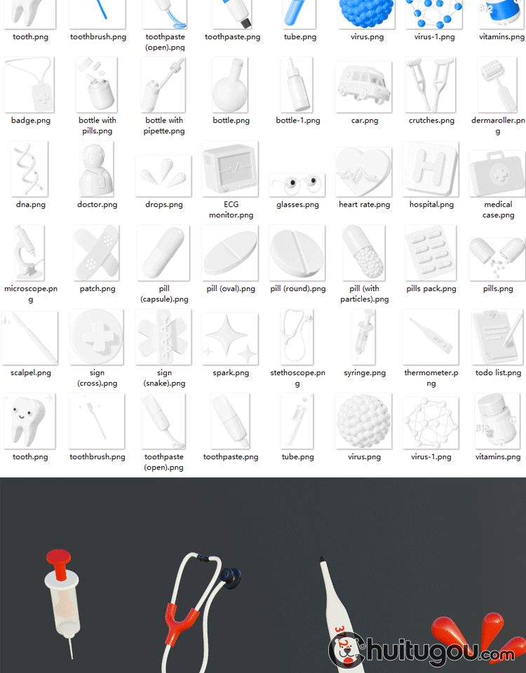 C4D医学3D图标模型附png医院标识药丸体温计听诊器救护车药箱OBJ