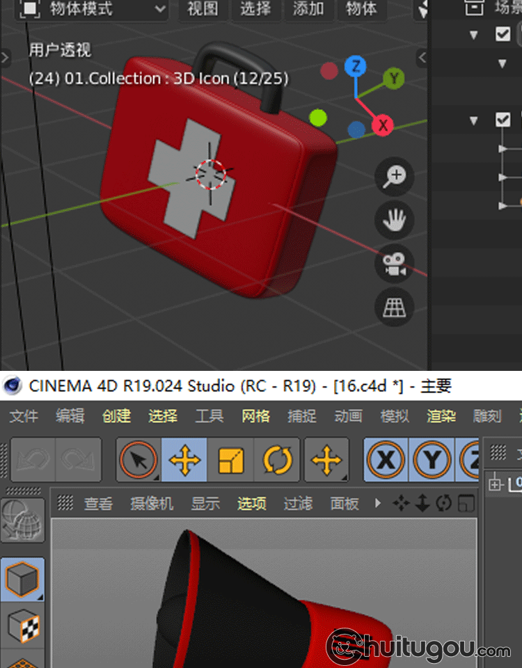 C4D医学标识ICON图标模型附png创可贴拐杖药瓶药箱显微镜试管OBJ