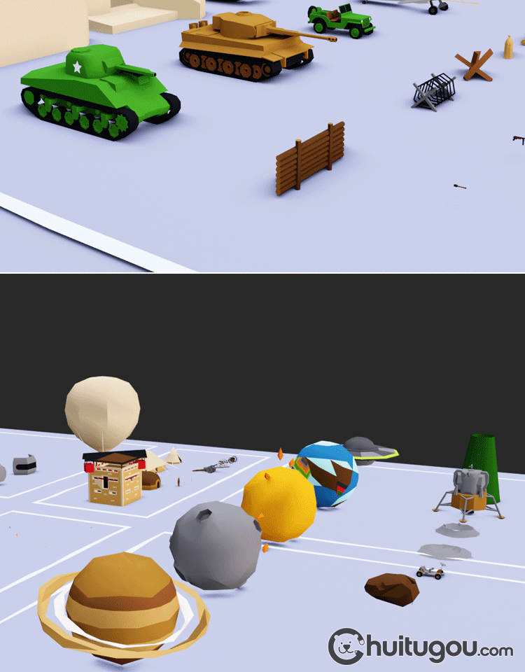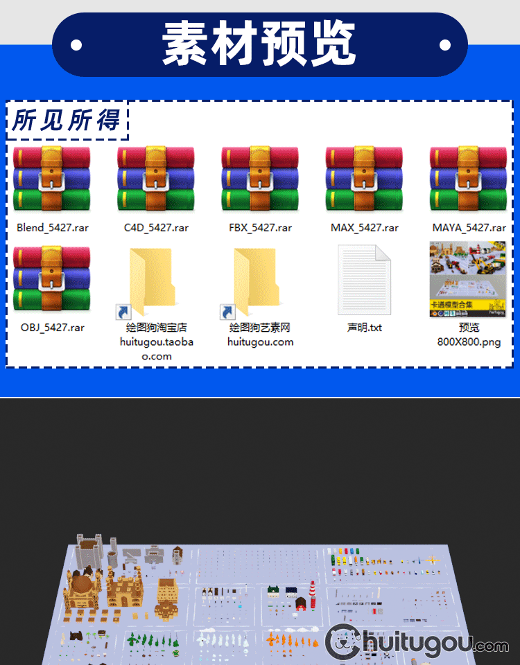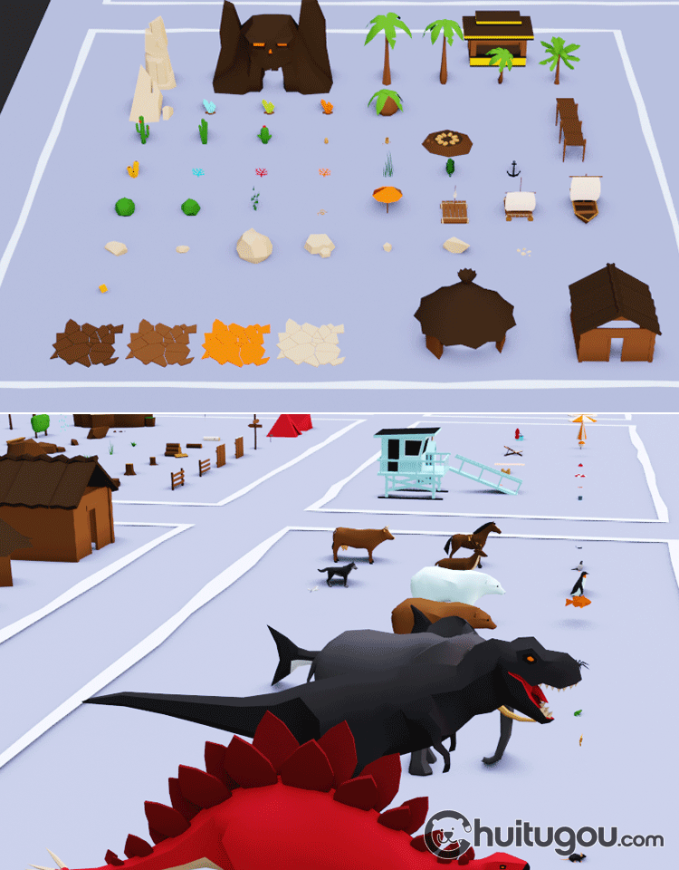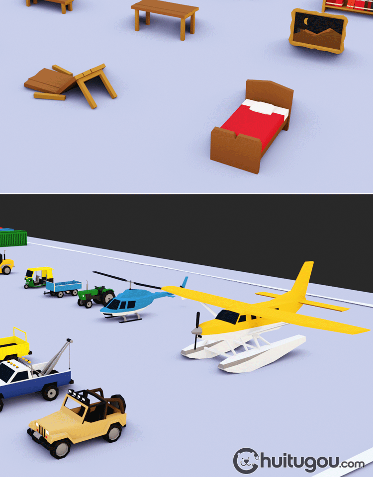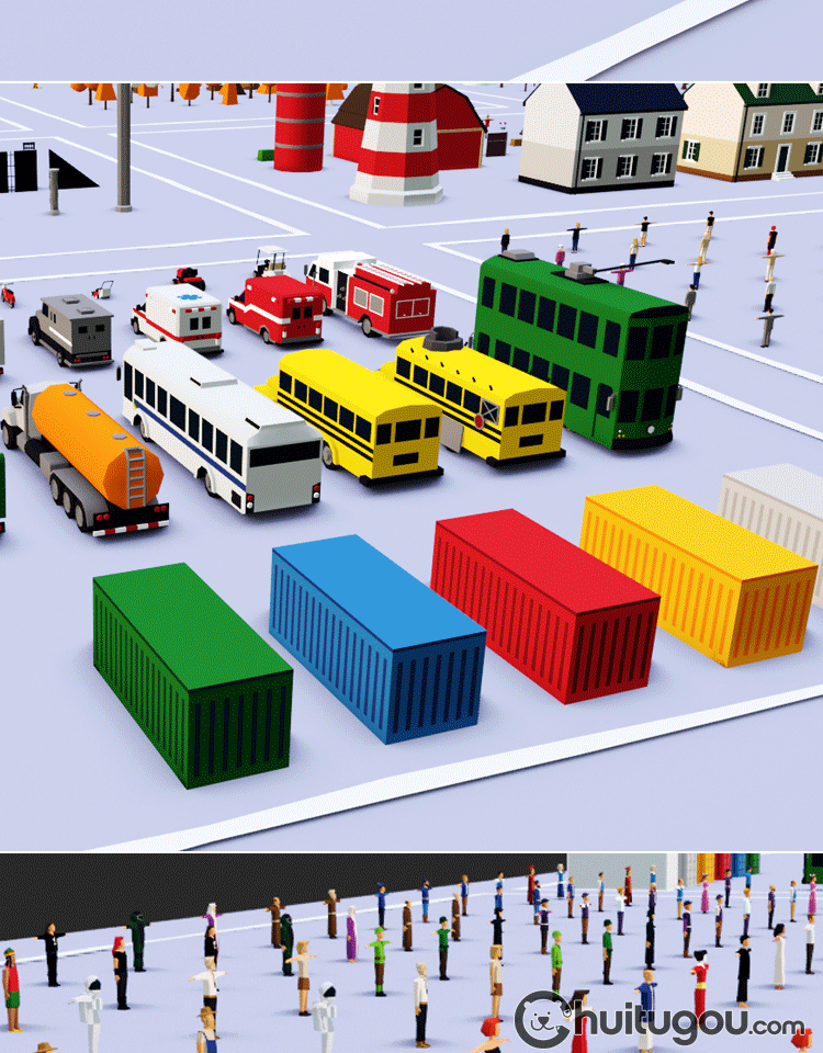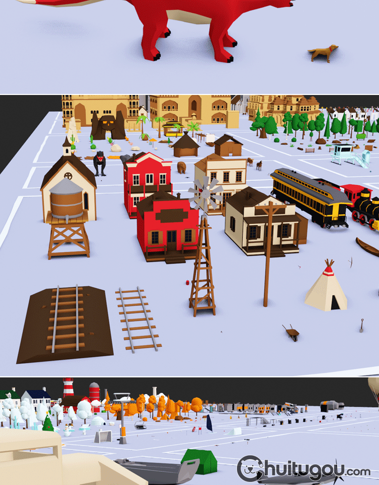 低面风 格超级资产包C4D卡通Blend建筑楼房车船FBX 人自然树草OBJ