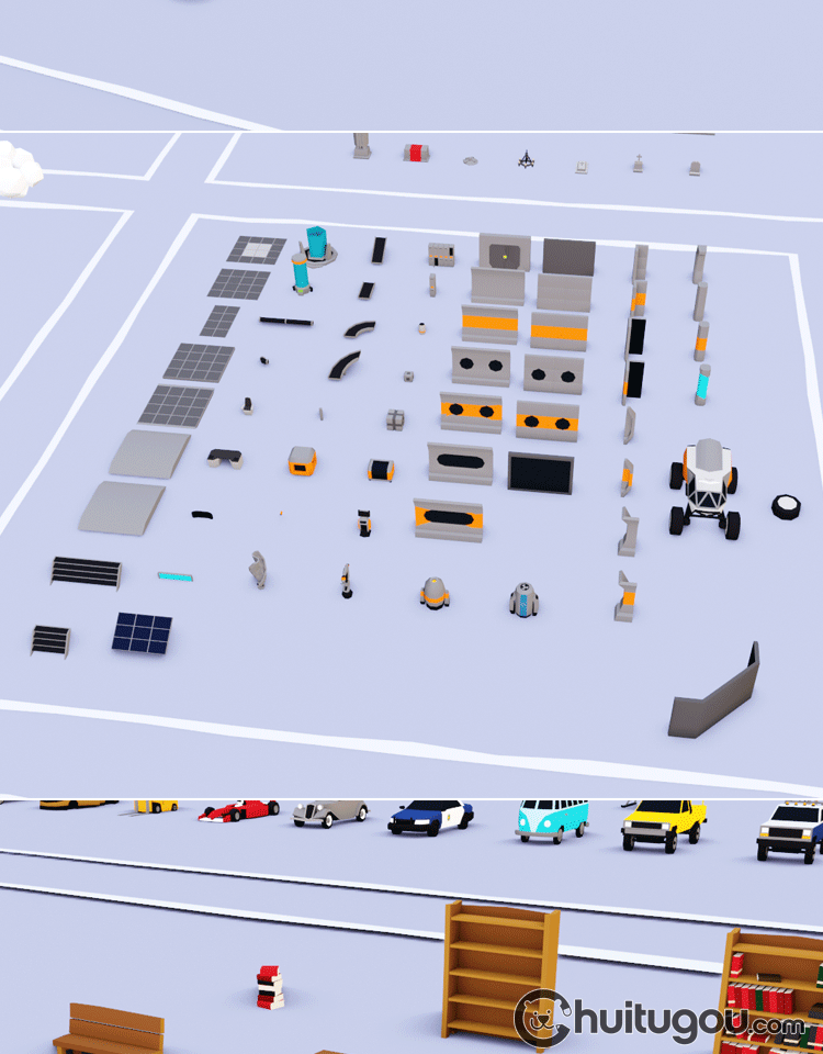 低面 城市资产包C4D建筑社区住宅商店Blender交通工具FBX汽车OBJ