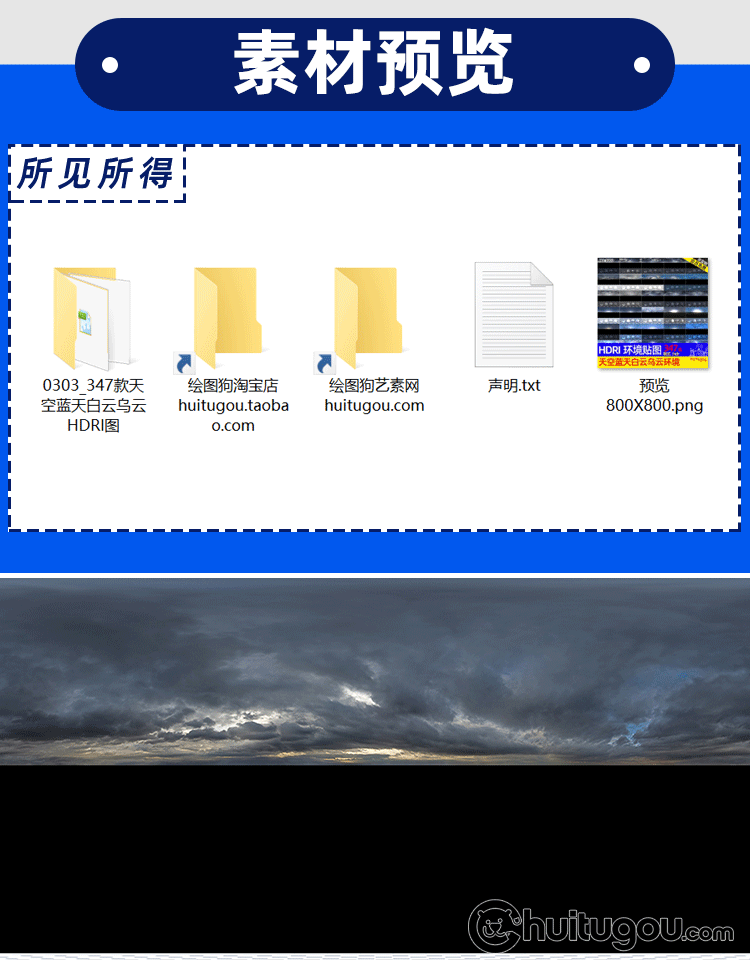 347款天空蓝天白云乌云晴天阴天环境HDRI贴图hdr格式灯光渲染素材