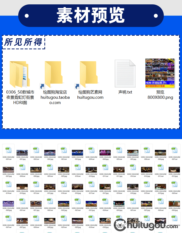 50款 城市夜景街景广场霓虹灯HDRI环境贴图hdr灯光图exr格式素材