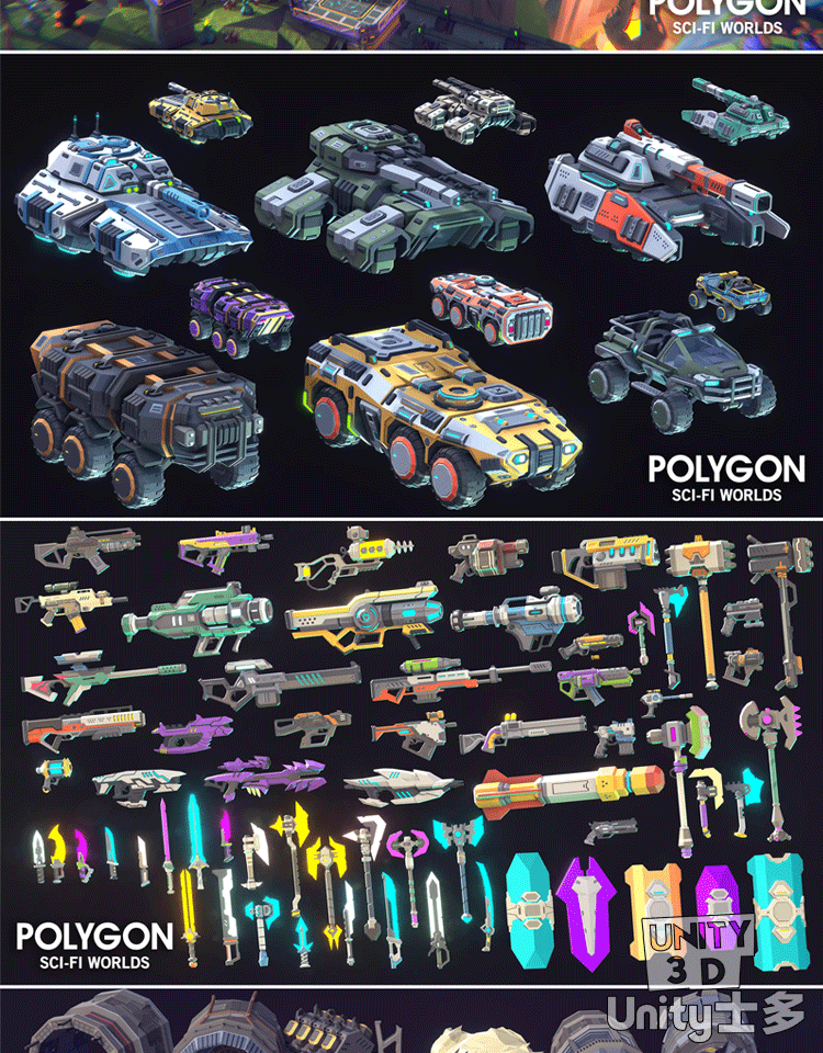 Unity3D科幻城市建筑武器U3D外星机器人POLYGON Sci-Fi City Pack