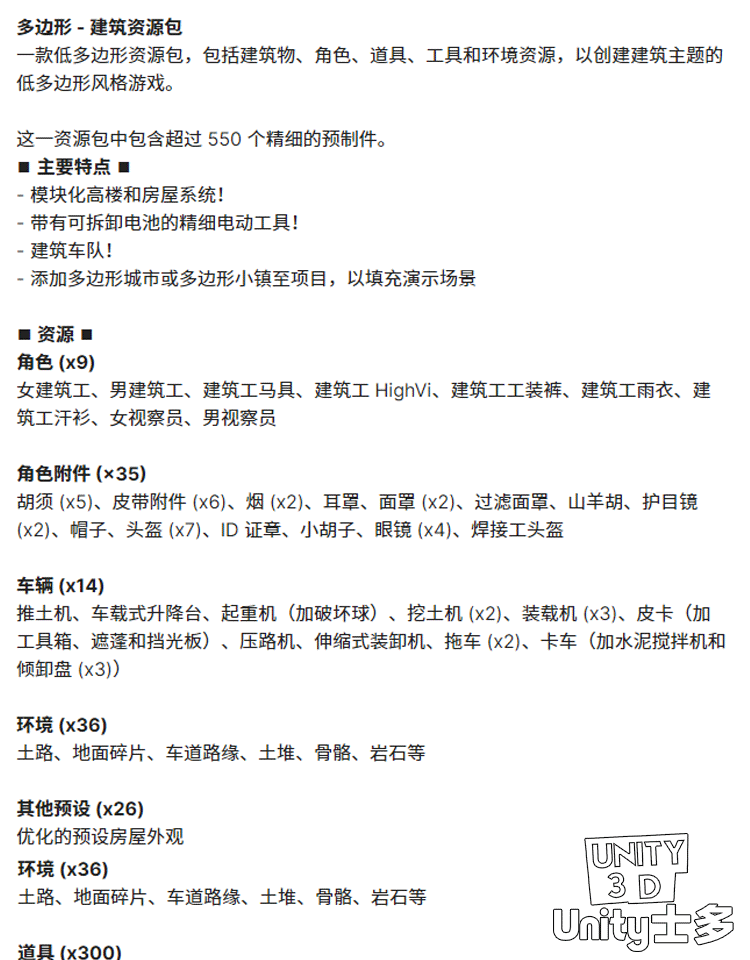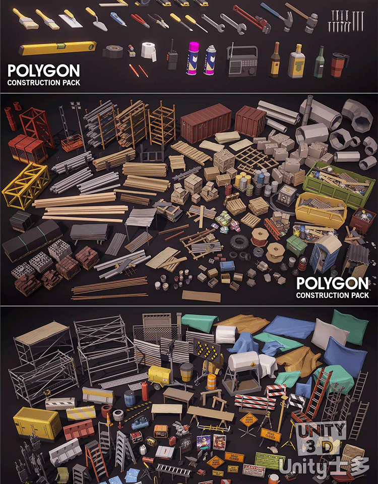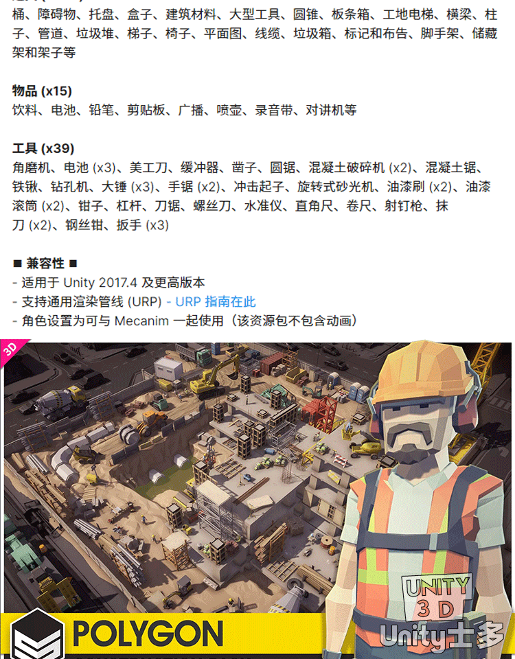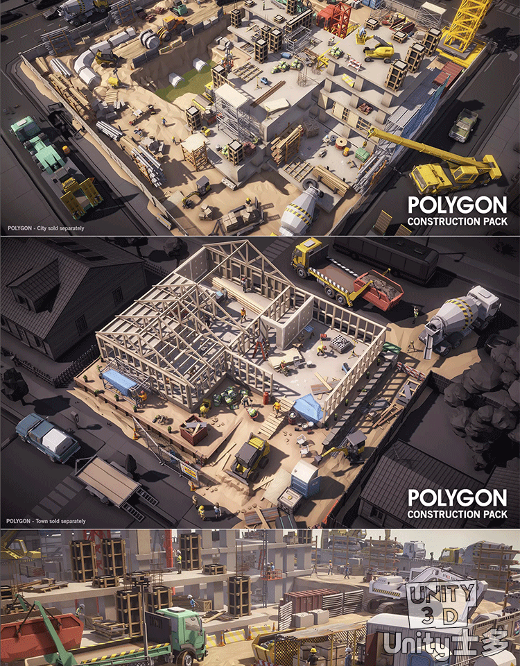Unity3D建筑工地场景工人工具工程车辆POLYGON Construction Pack