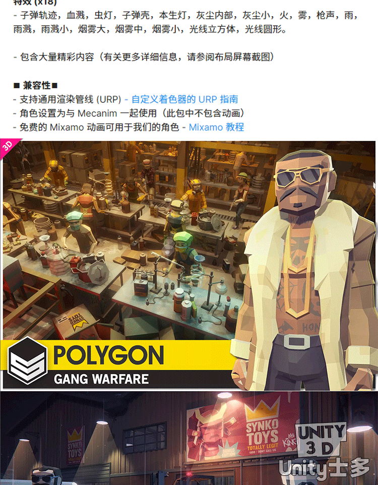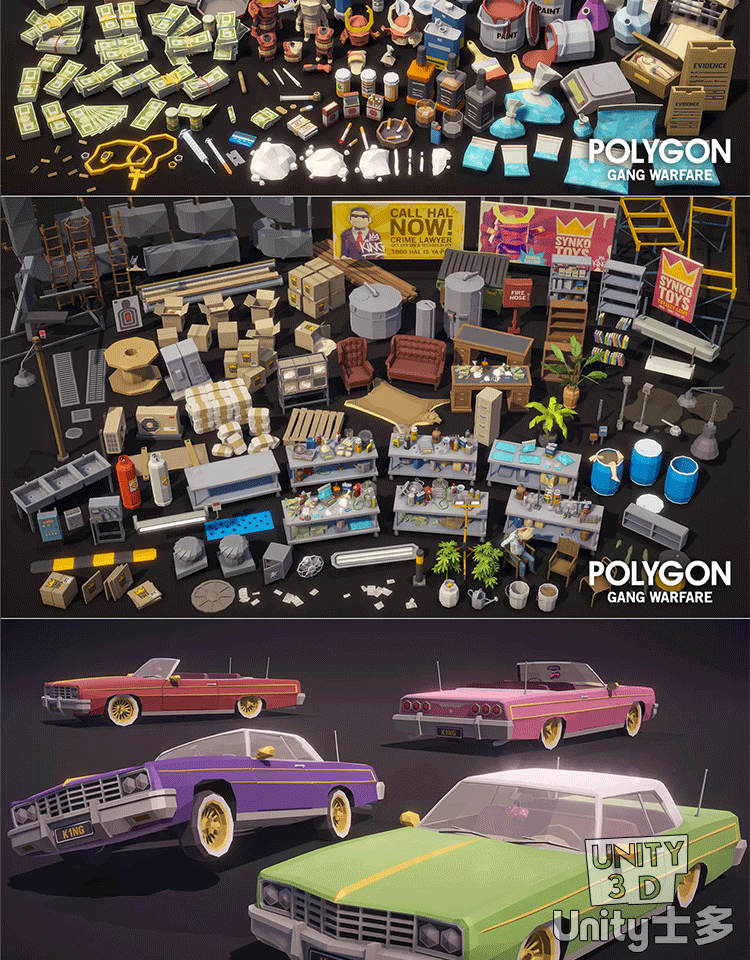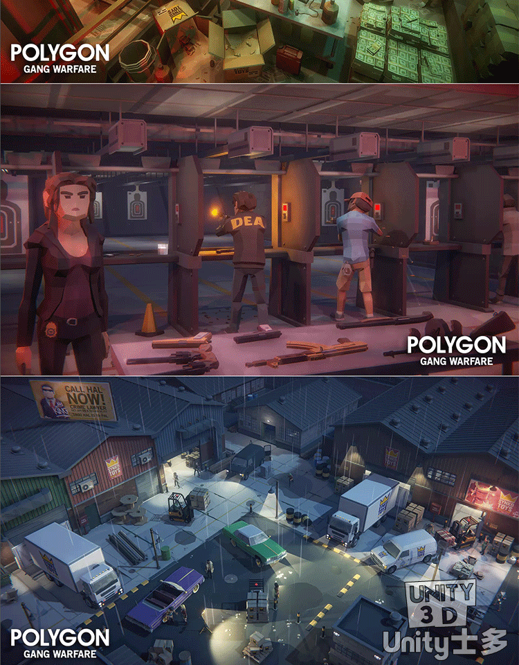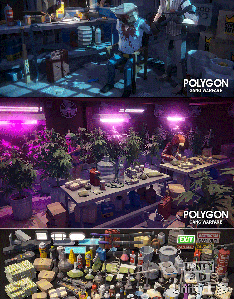 Unity3D犯罪斗争主题游戏场景帮派角色POLYGON Gang Warfare Pack