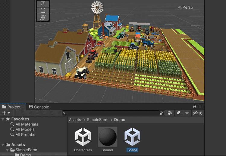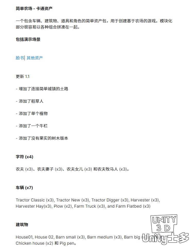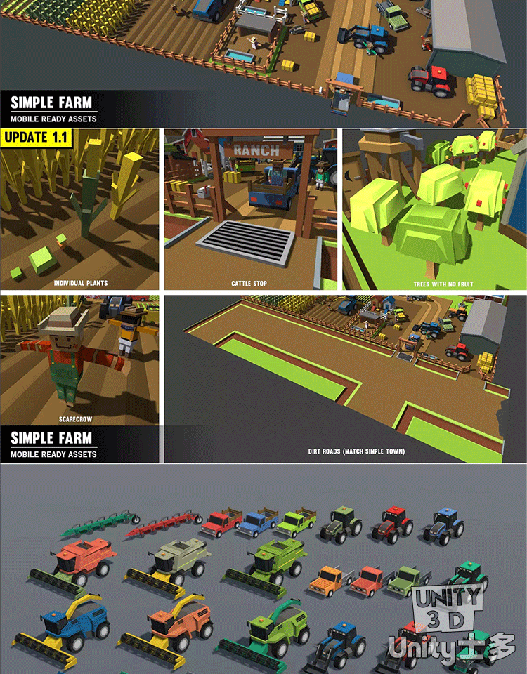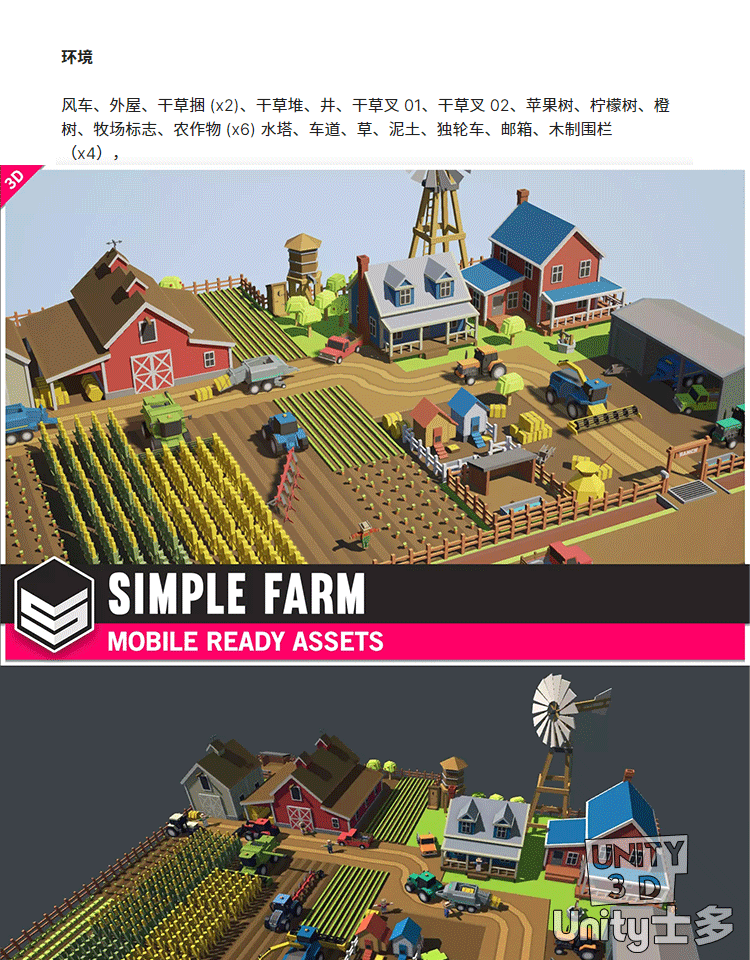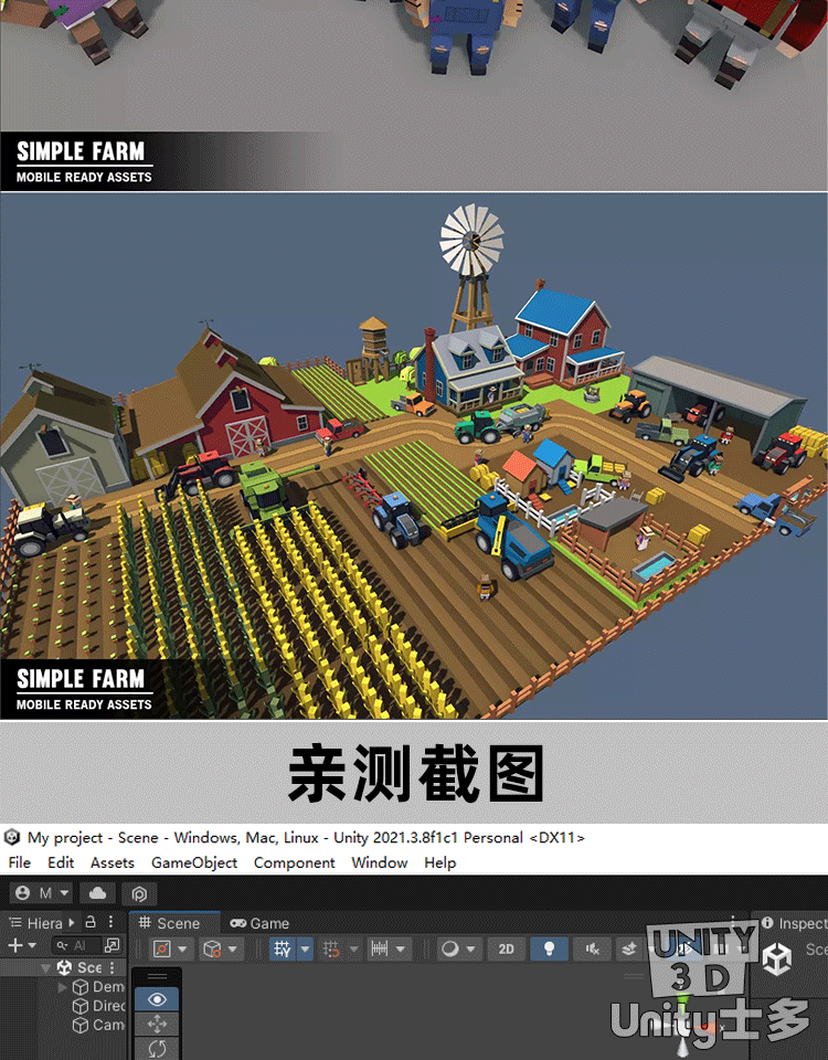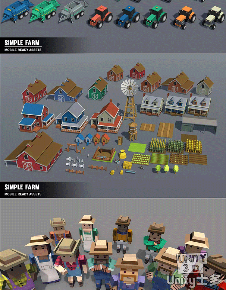 Unity农场场景U3D建筑收割机多边形像素风格模型农民Simple Farm