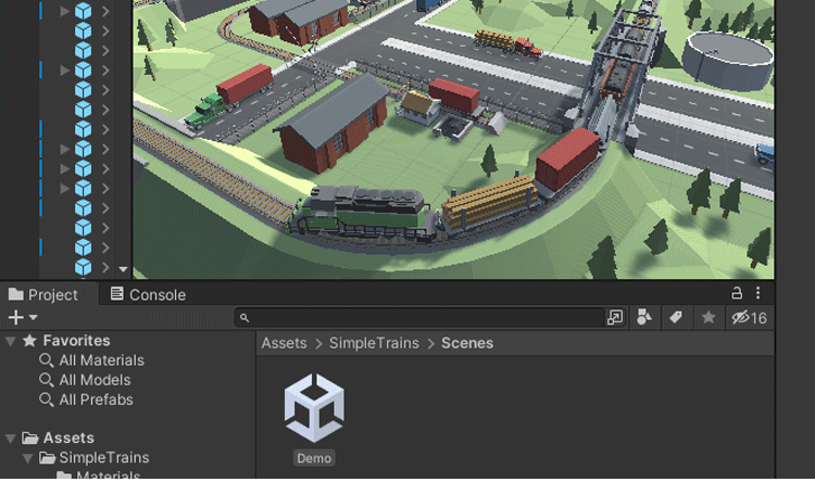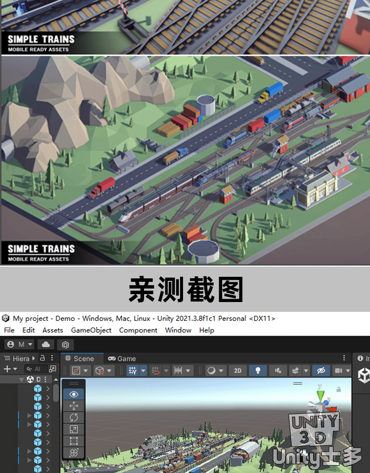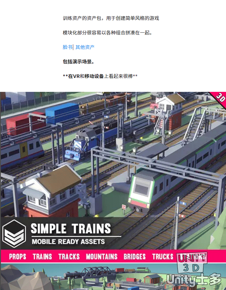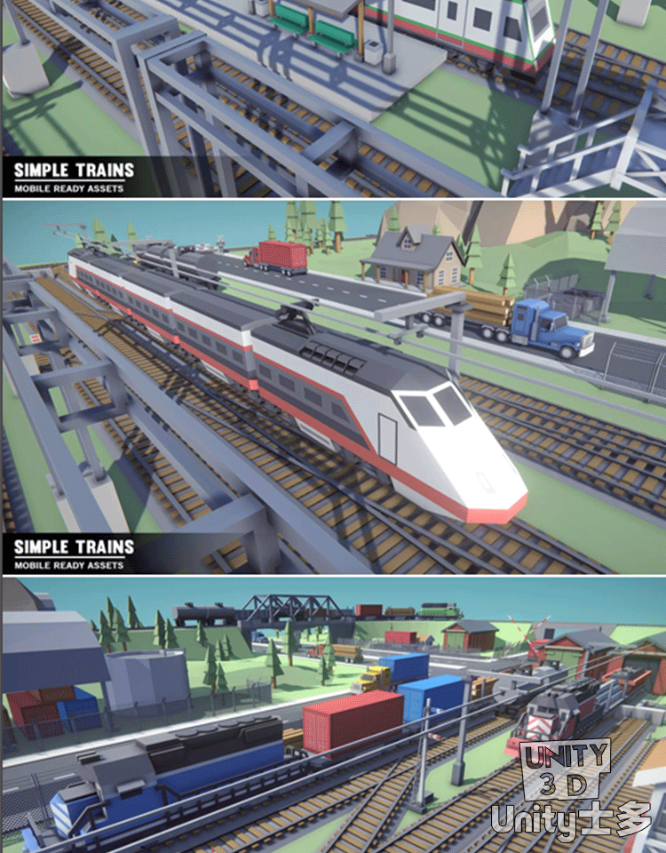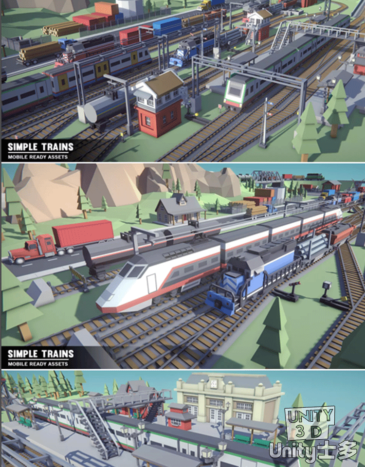 Unity3D简单多边形火车站铁路场景U3D火车高铁列车Simple Trains