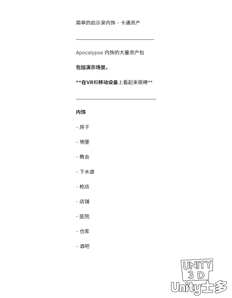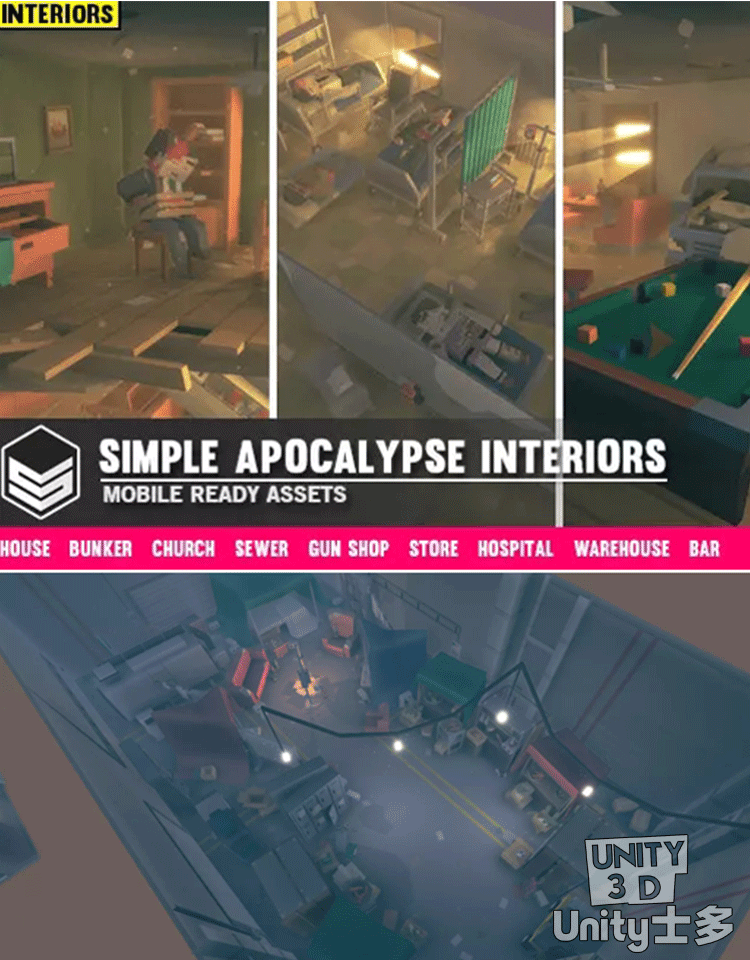 Unity末日游戏室内场景U3D医院仓库Simple Apocalypse Interiors