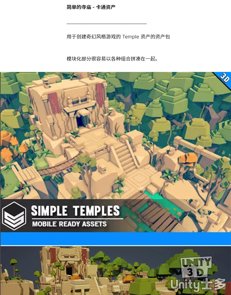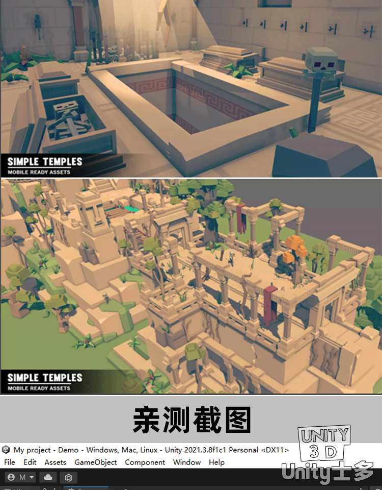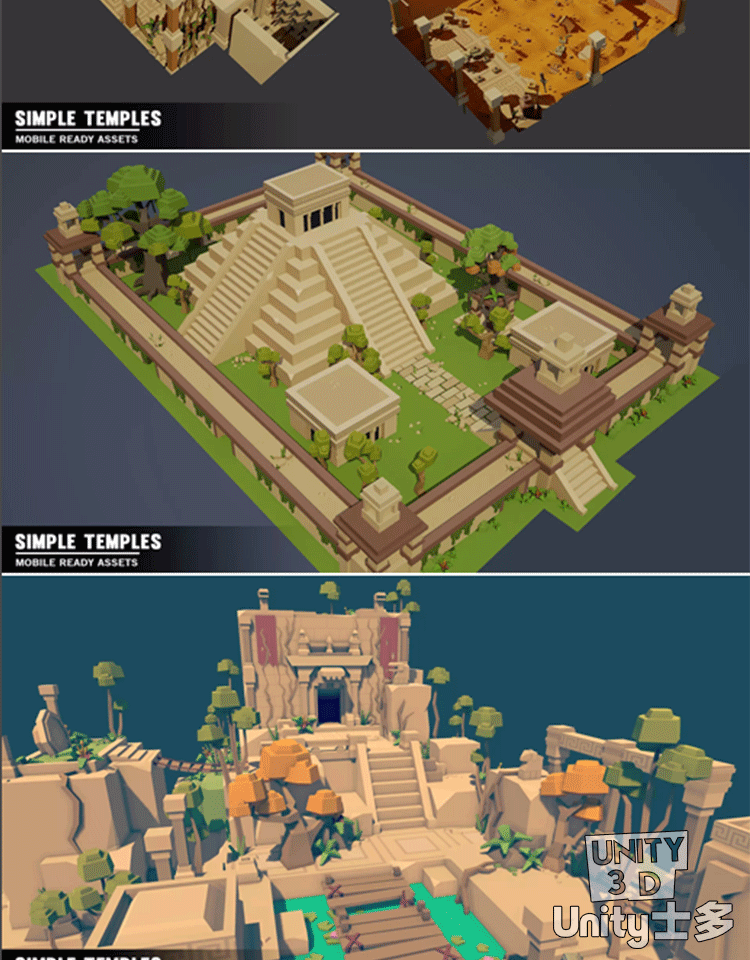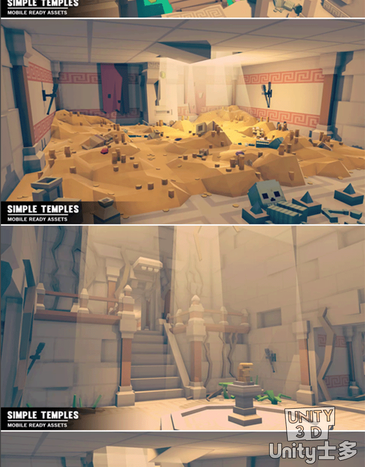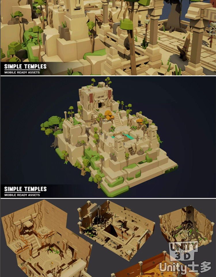 Unity3D低面风格化寺庙U3D资产包古迹遗址游戏场景Simple Temples