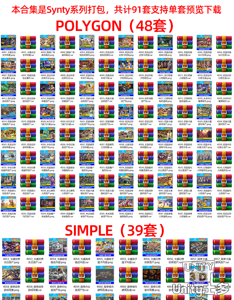 超级合集91套Unity3D低面卡通模型LOWPOLY场景POLYGON资产U3D素材
