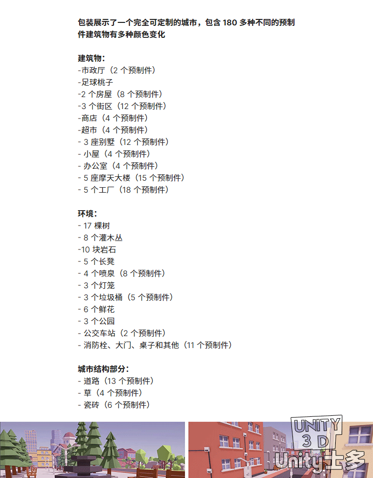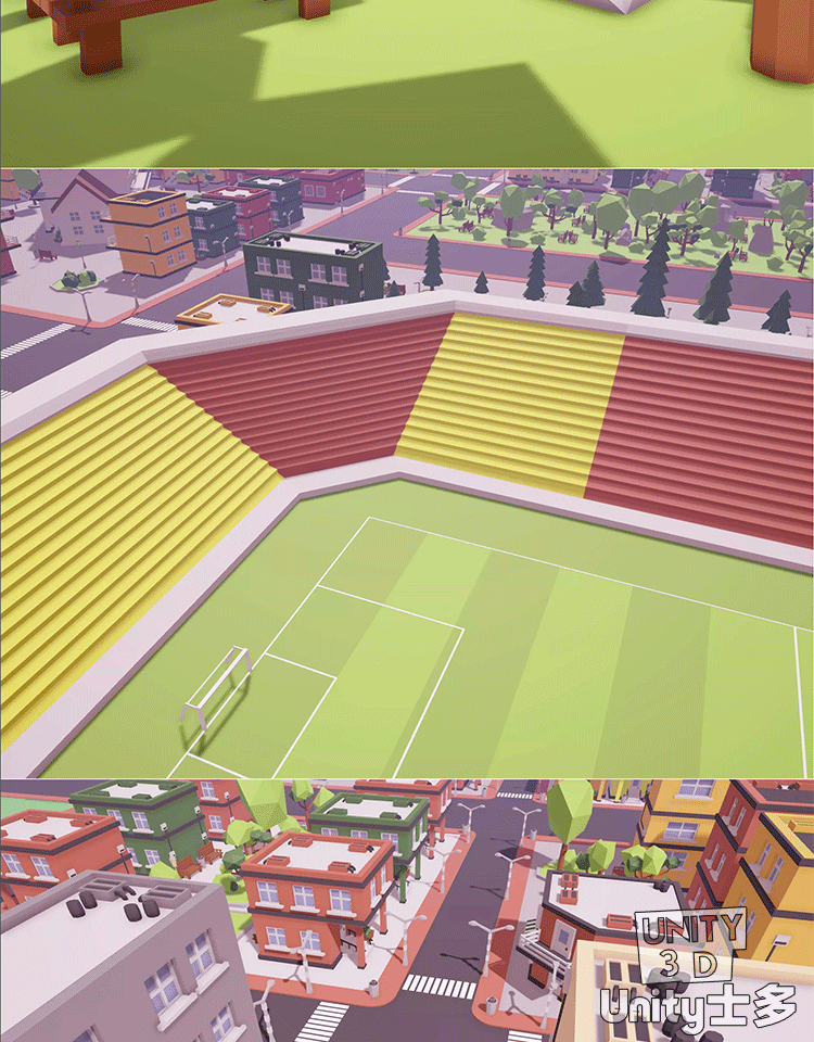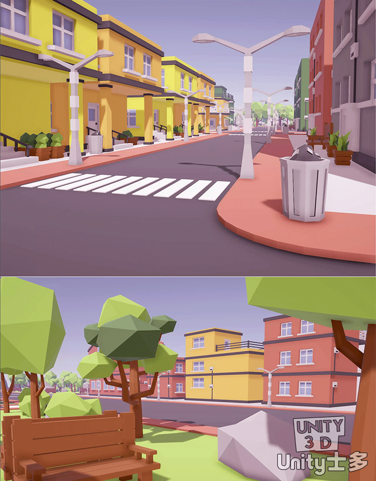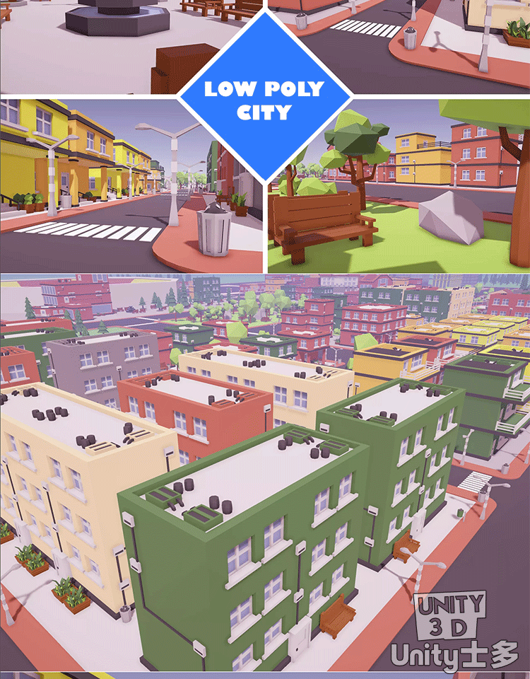 Unity3D卡通城市建筑道路绿化环境社区资产包Low Poly City Asset