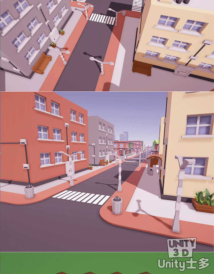 Unity风格化城市游戏场景U3D建筑道路道具绿化植物车辆Toon City