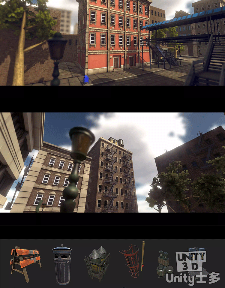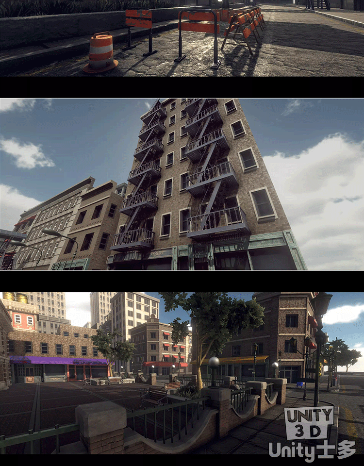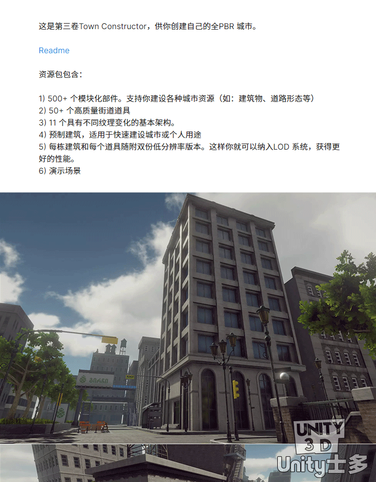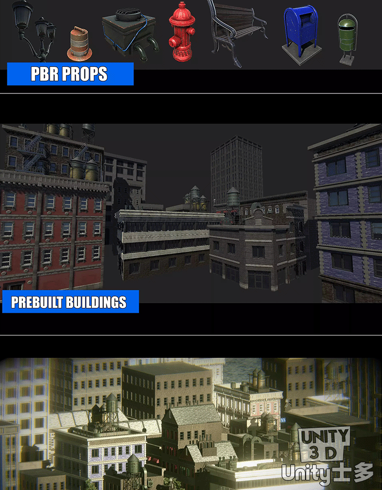 Unity写实PBR城市场景U3D建筑物街道道具资产包Town Constructor