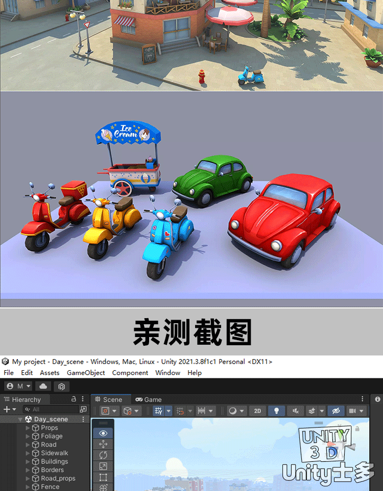 Unity风格化城市游戏场景U3D建筑道路道具绿化植物车辆Toon City