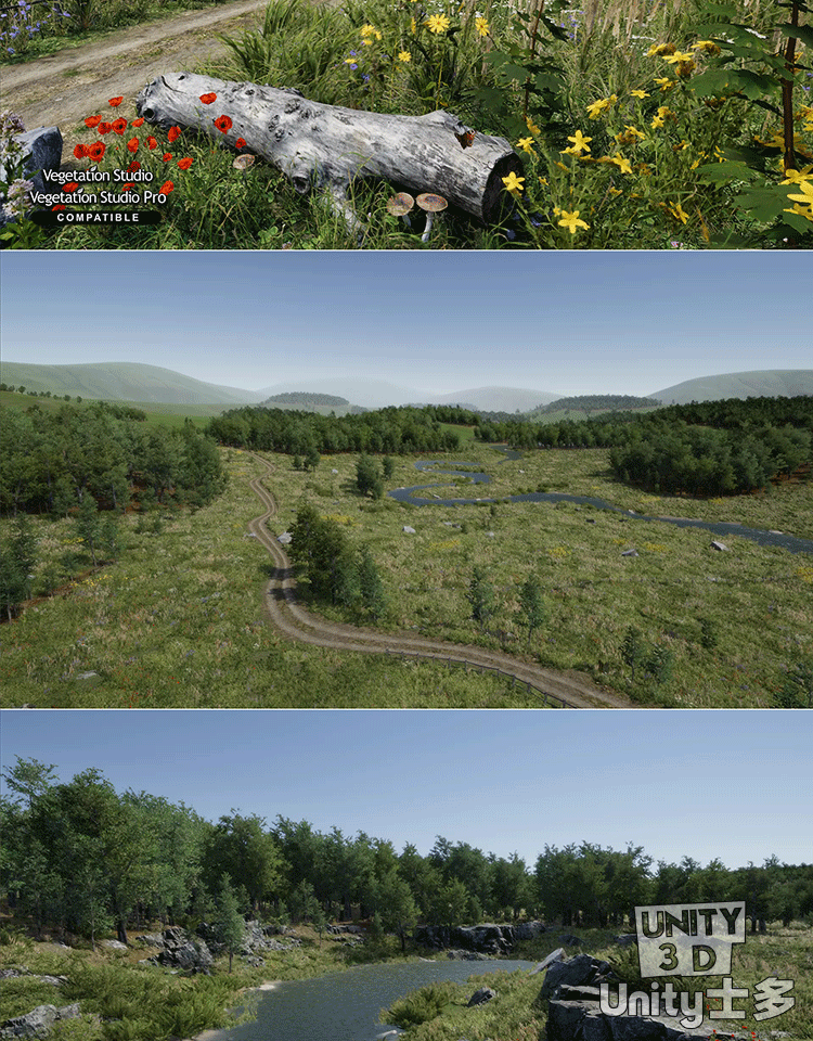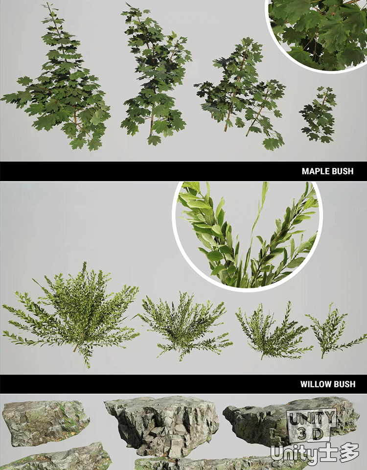 Unity3D写实自然模型包松树阔叶树岩石草地Open World Nature Kit