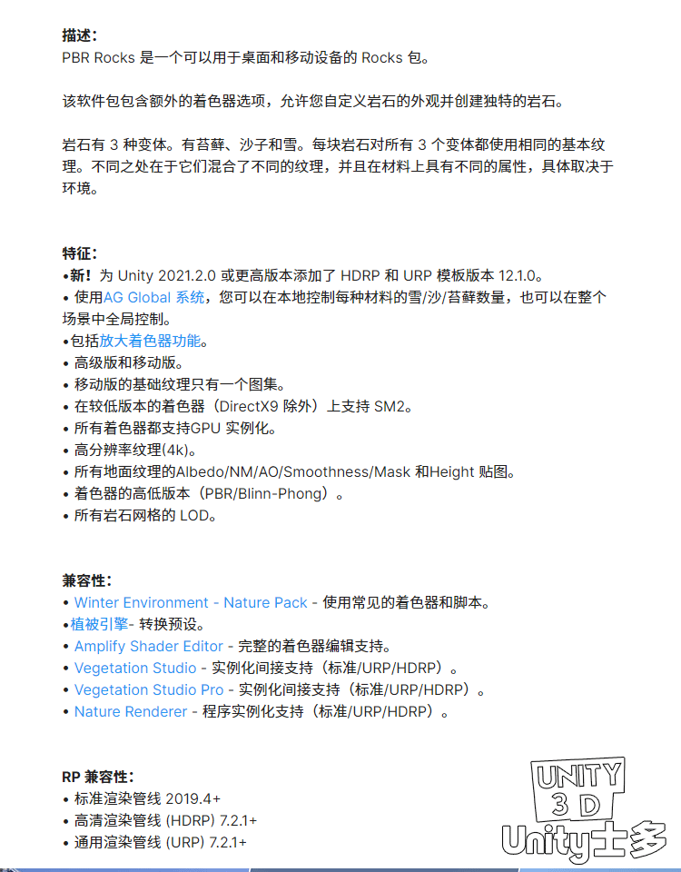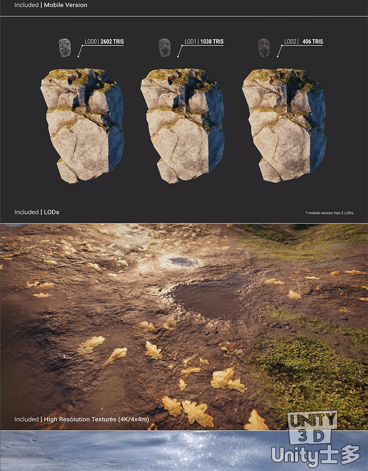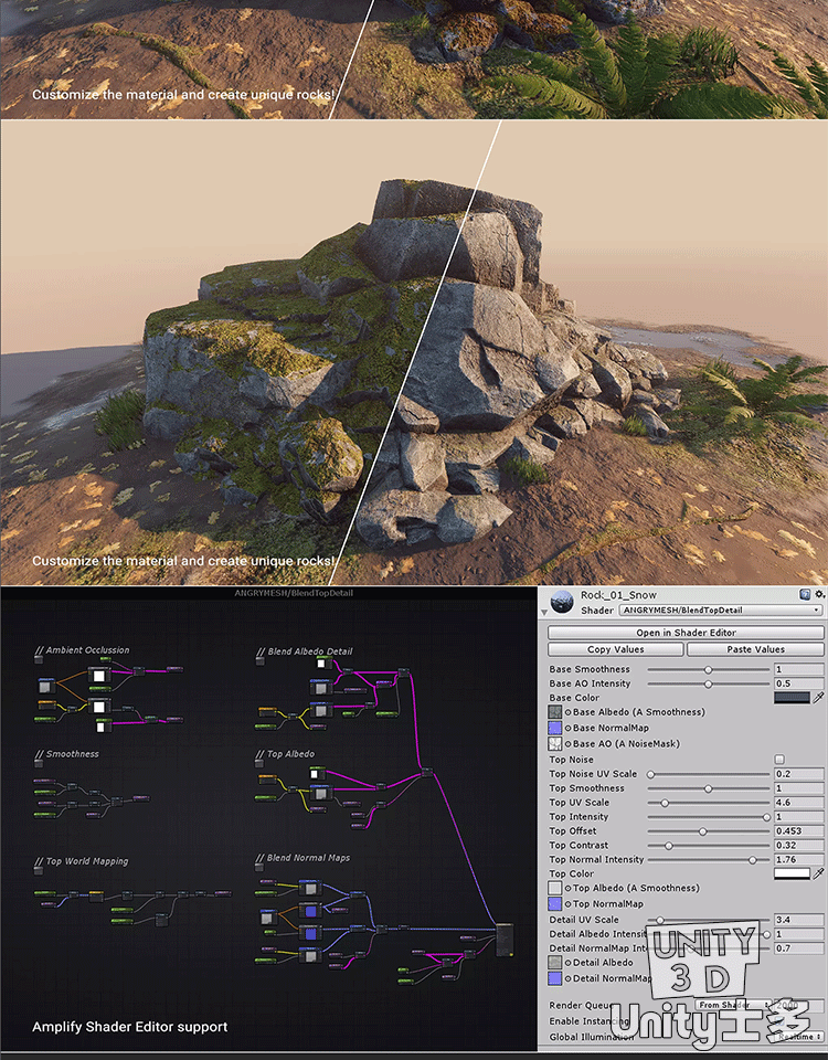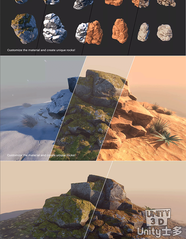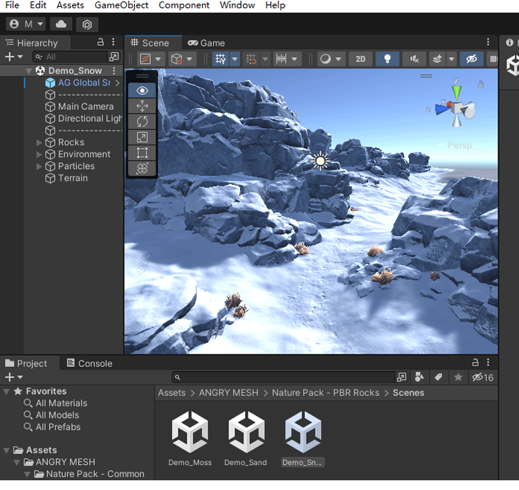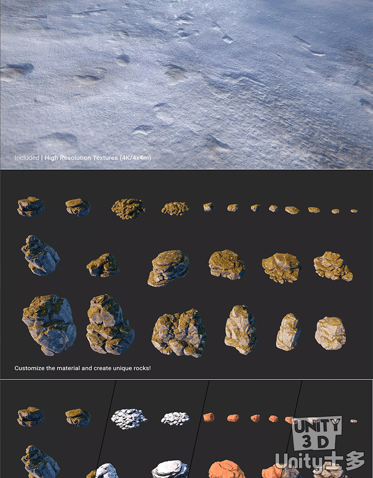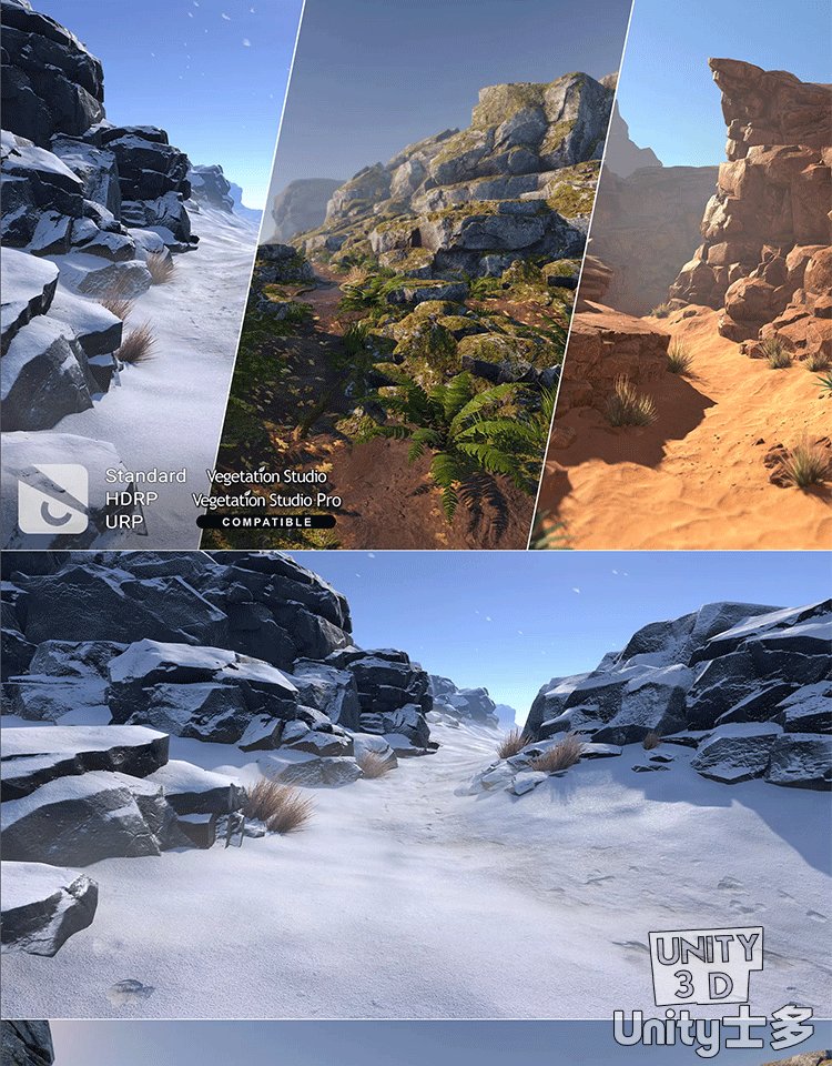 Unity写实PBR岩石地貌模型U3D苔藓积雪沙岩石头资产包Nature Pack