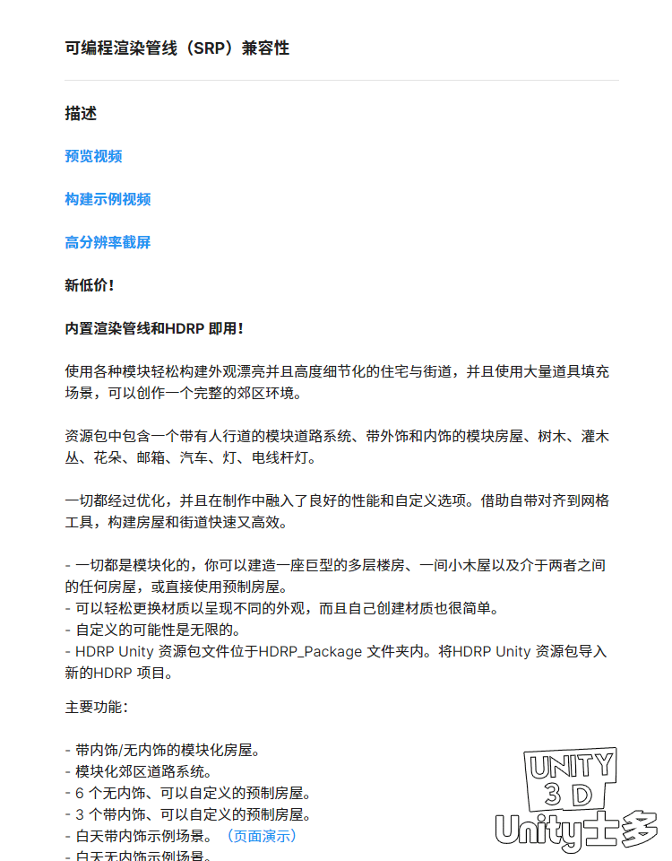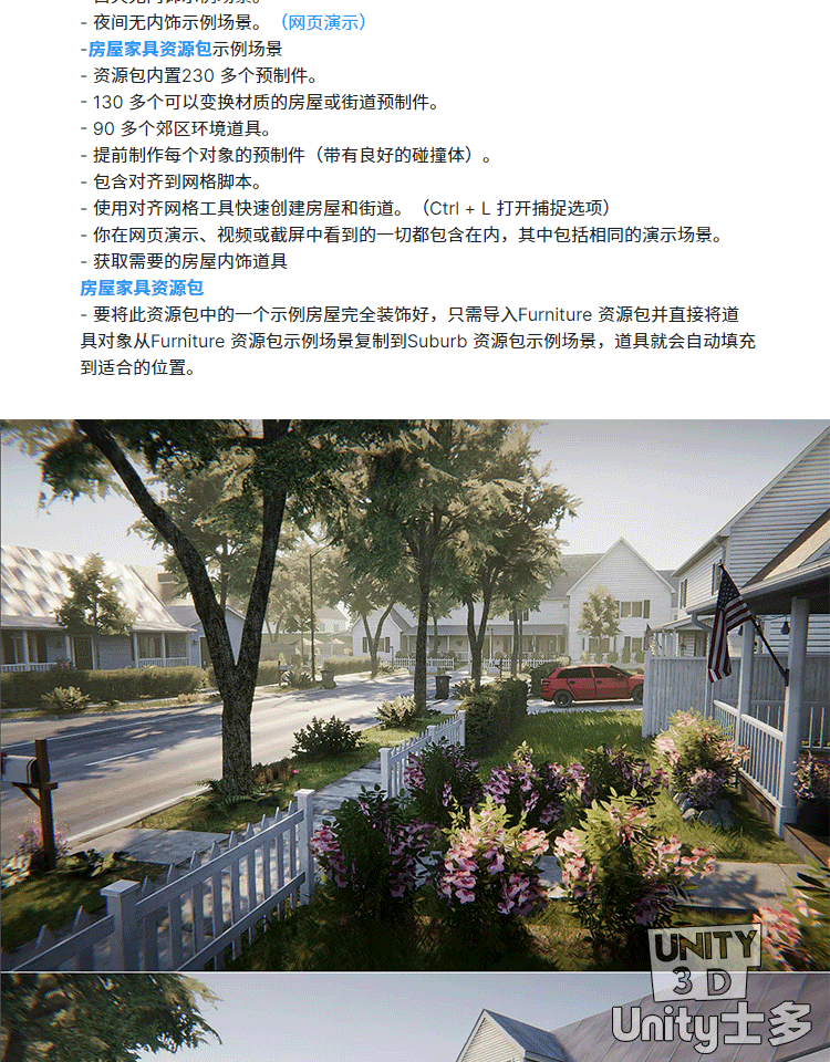 Unity社区住宅场景建U3D筑道路庭院家具模块Neighborhood House