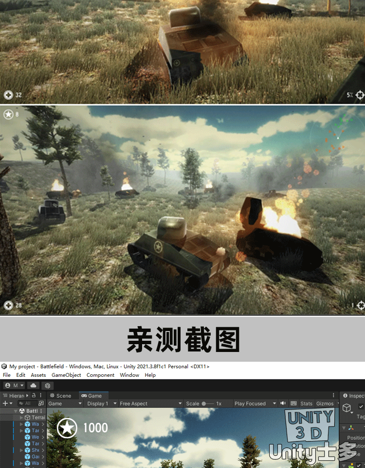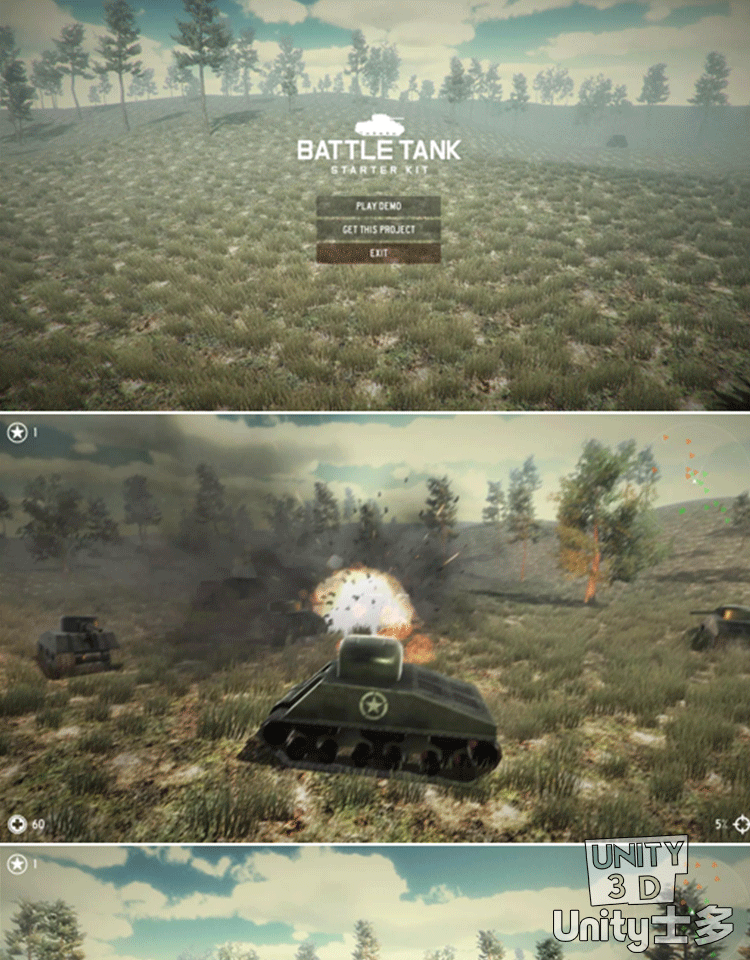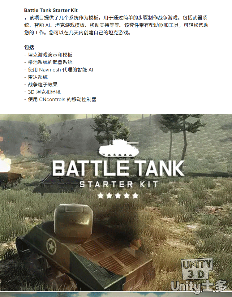 Unity3D战争游戏资产包U3D战场环境坦克Battle Tank Starter Kit