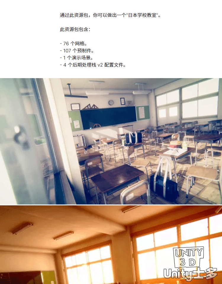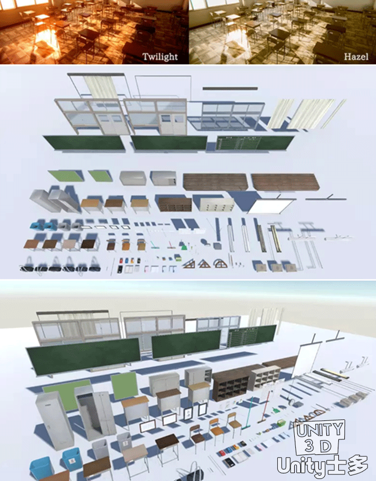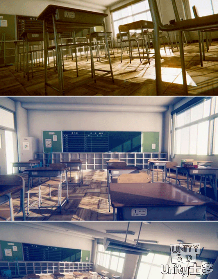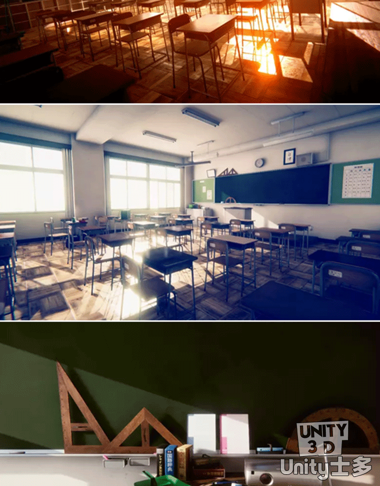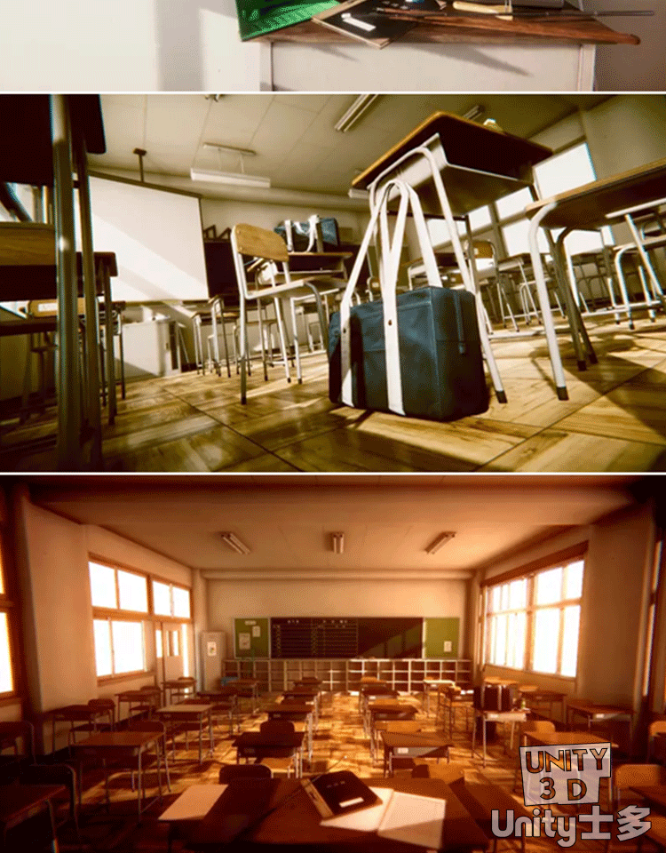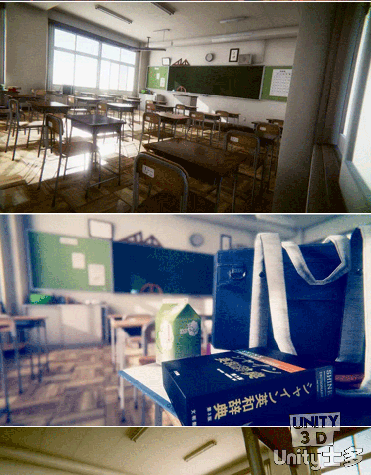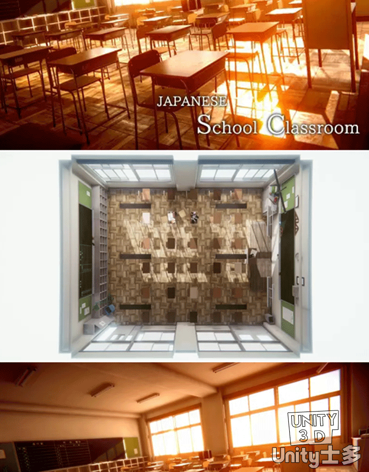 Unity3D日式风格教室场景模型U3D学生课桌黑板Japanese Classroom