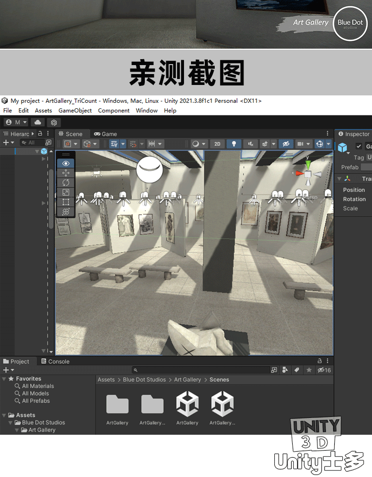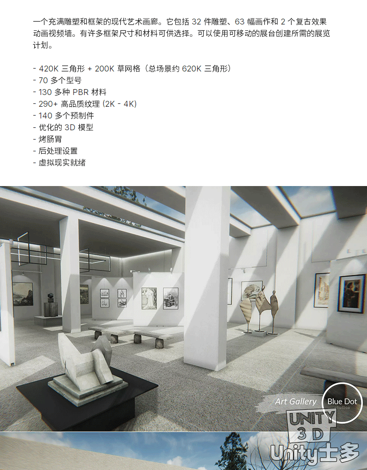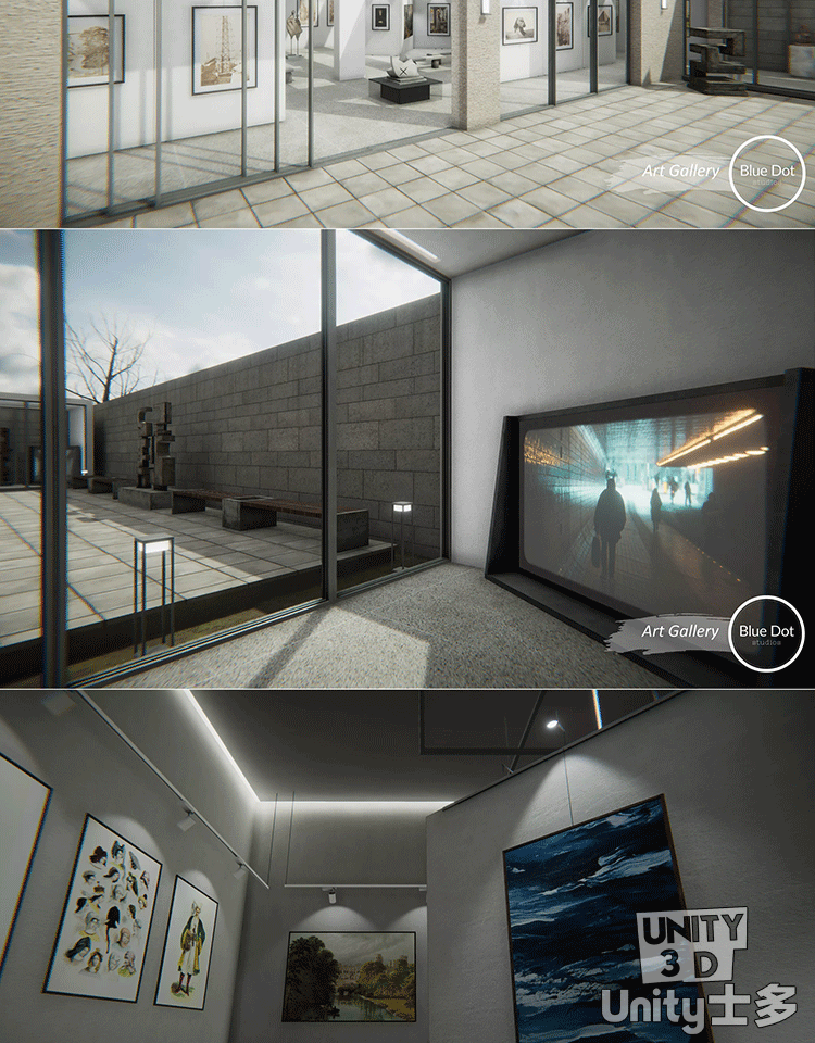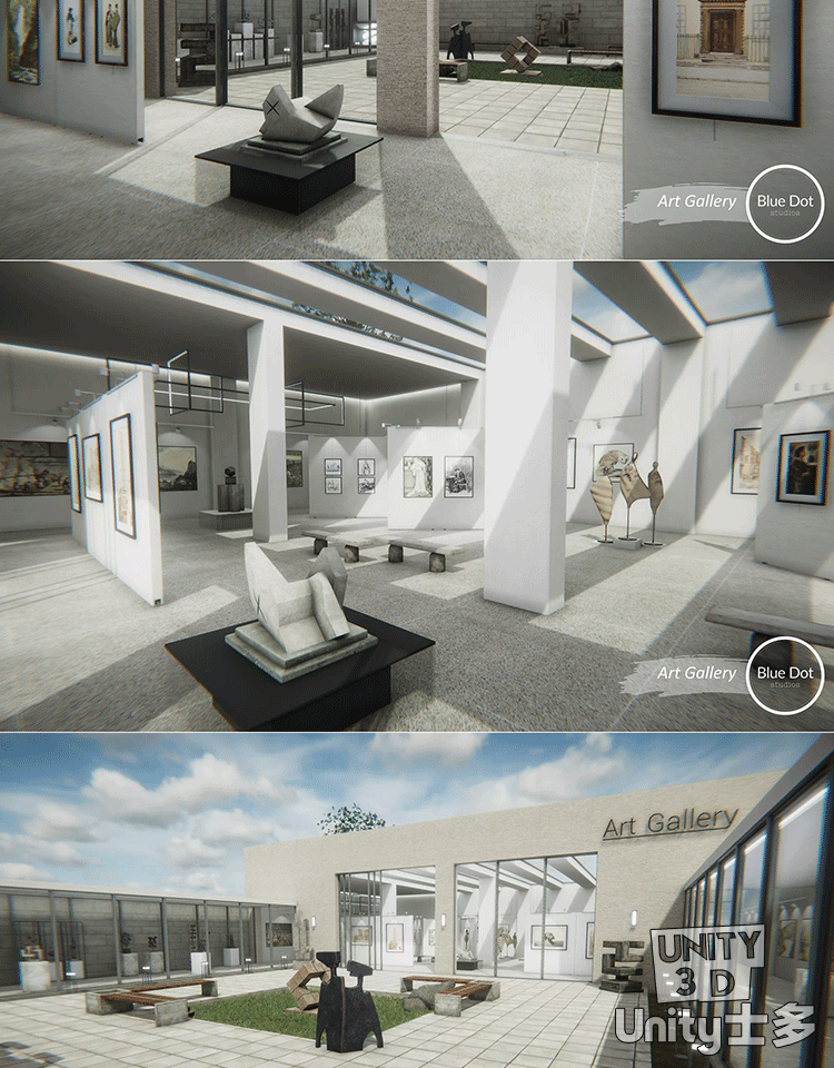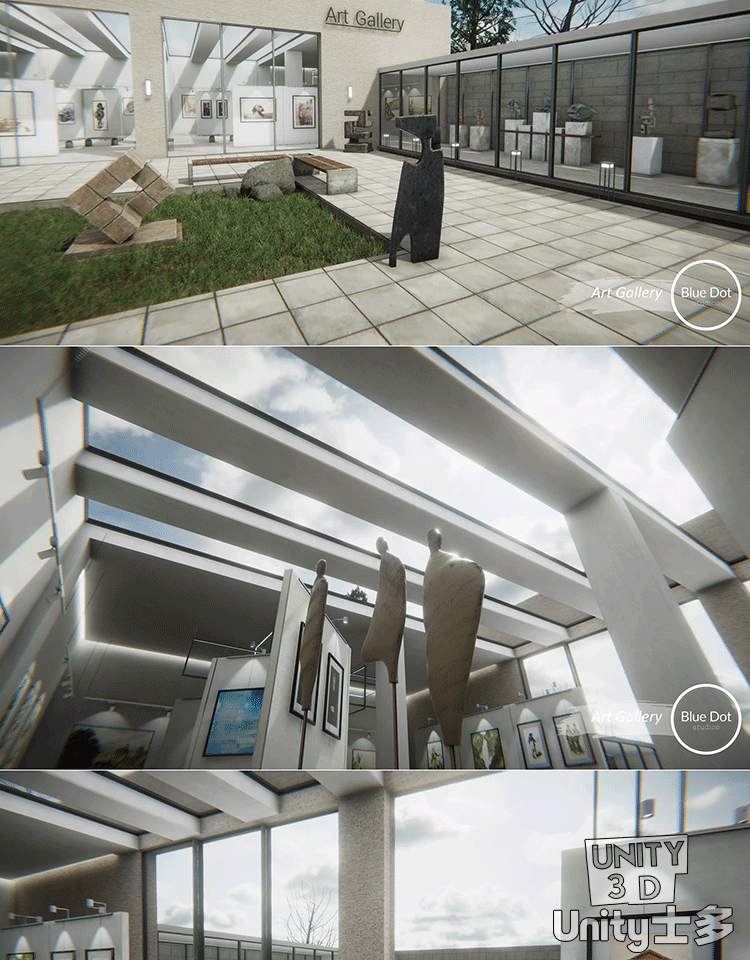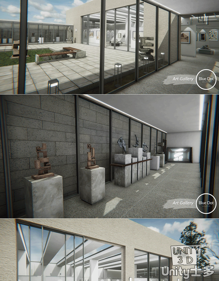 Unity现代艺术展厅画廊美术馆场景Art Gallery Blue Dot Studios