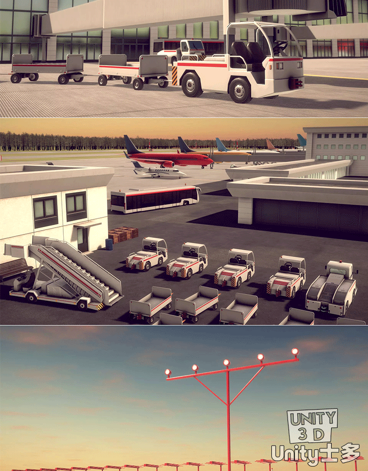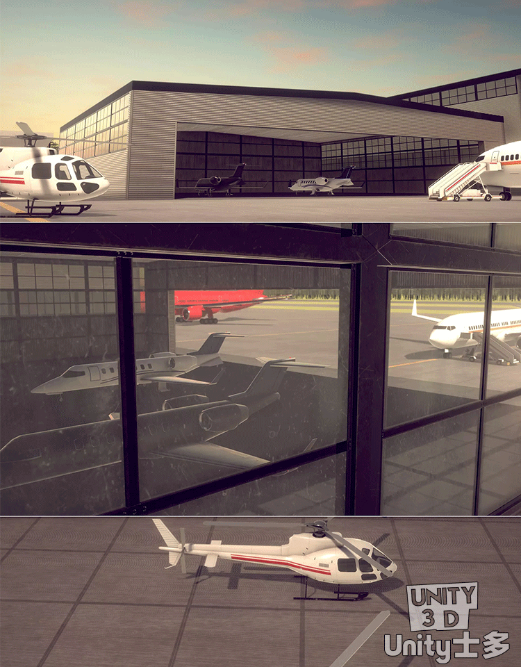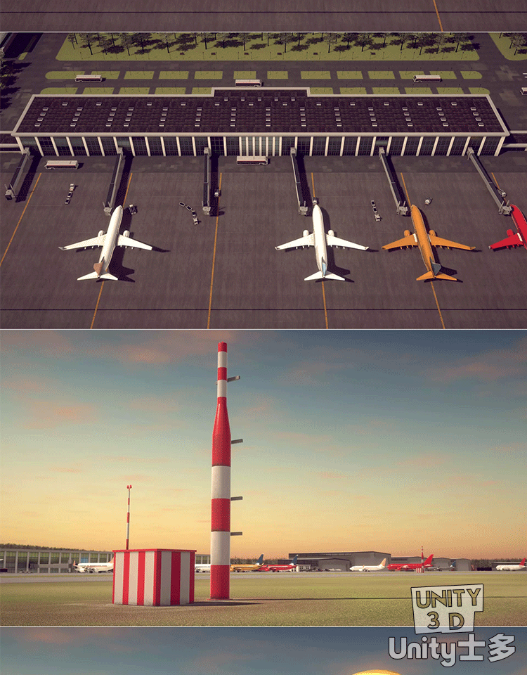 Unity直升机波音飞机场航站楼飞机跑道场景模型Airport Pack v1.0