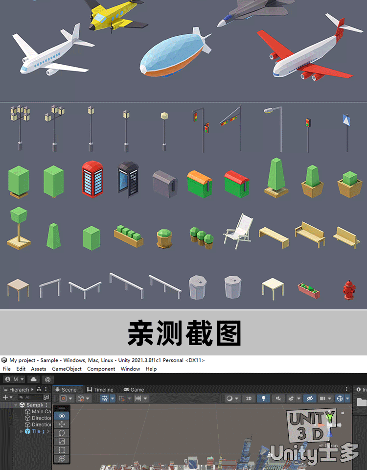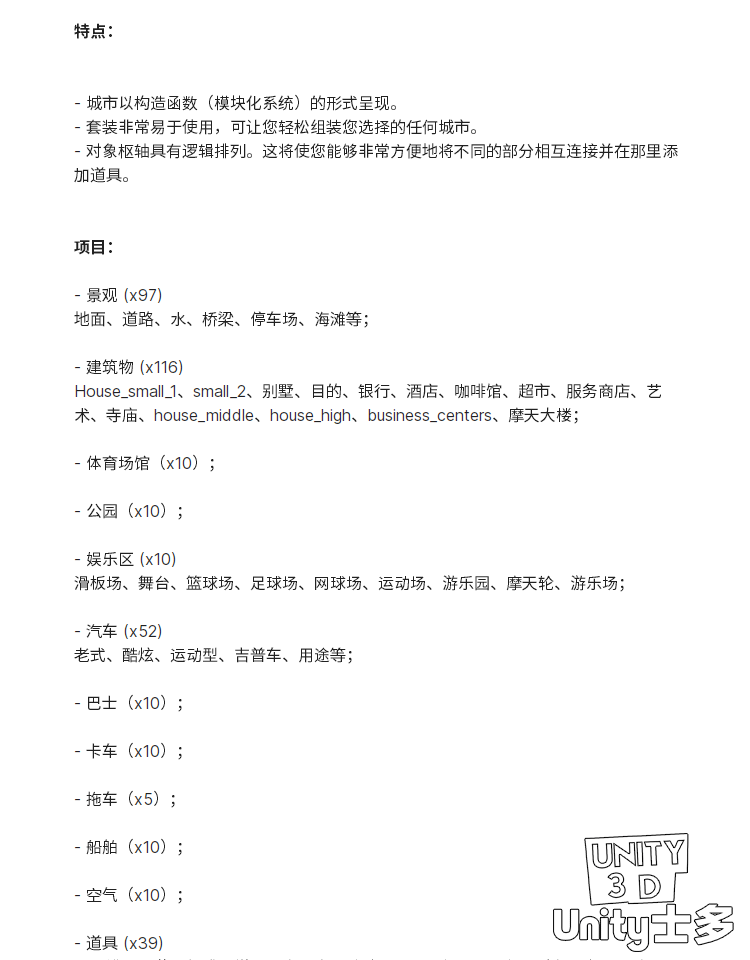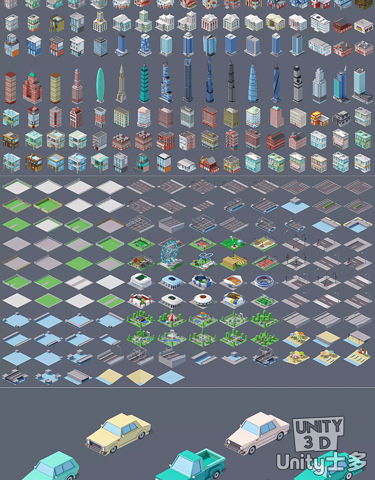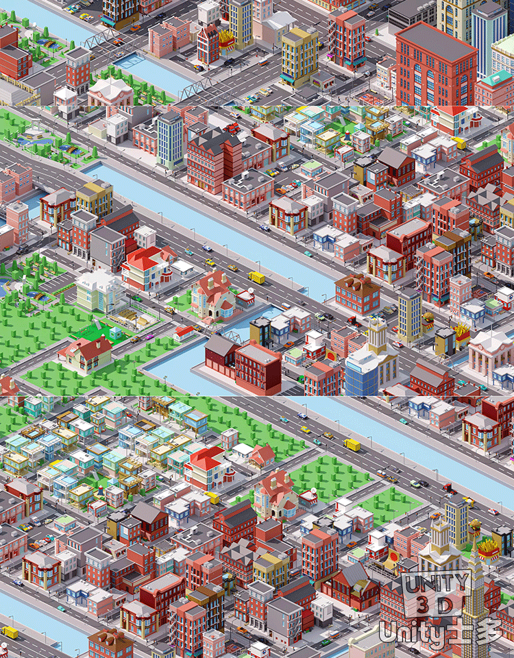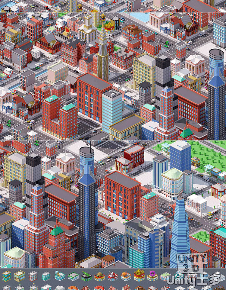 Unity3D卡通城市建筑高楼商店街道U3D场景city 3d low poly 3 1.0