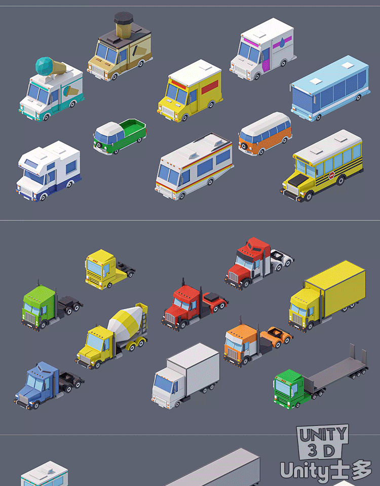Unity3D卡通低多边形树木灌木岩石自然资产low_poly_vegetation_1