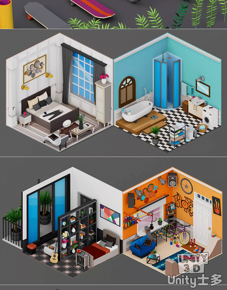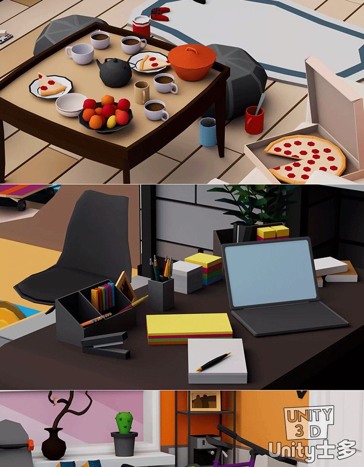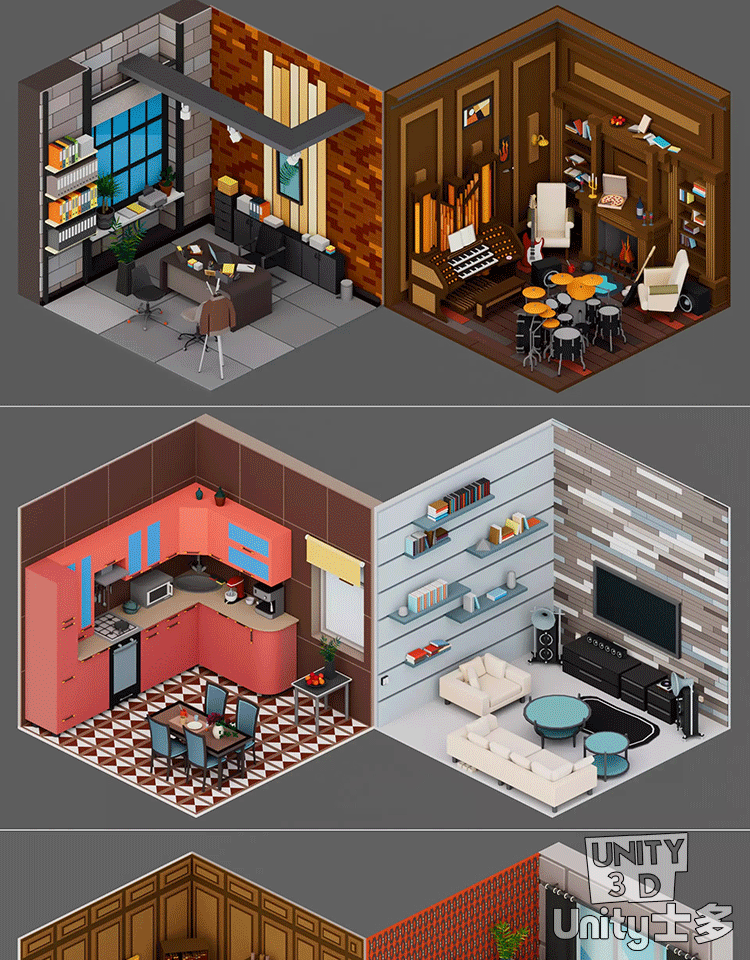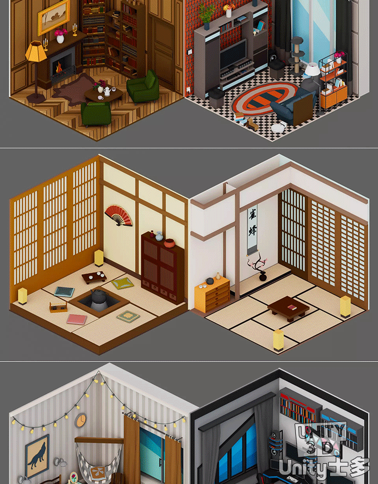 Unity3D低面卡通房间场景模型Low Poly 30 Rooms Interiors [1.0]