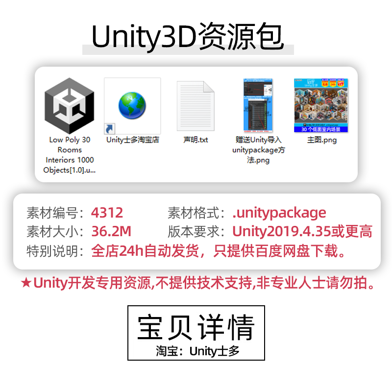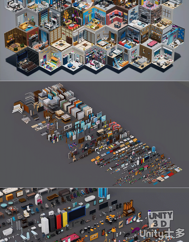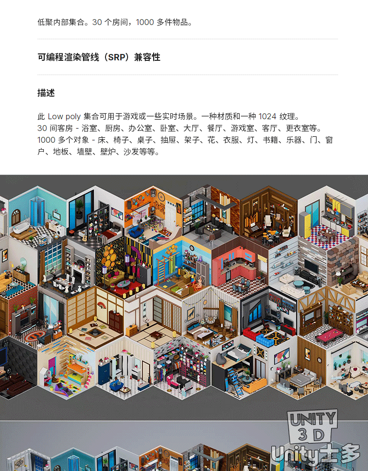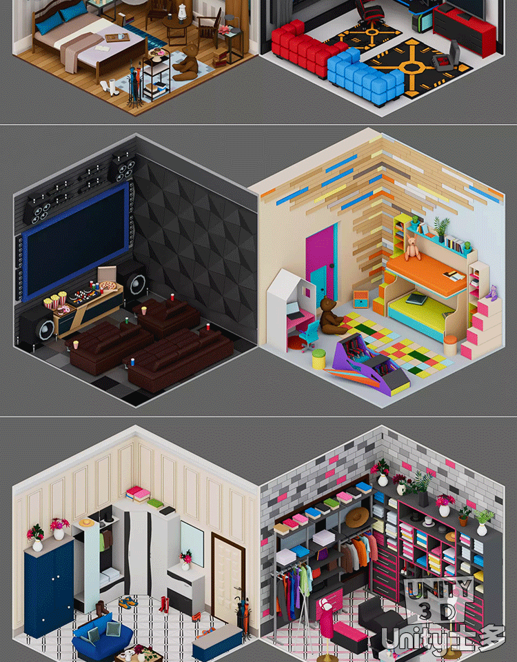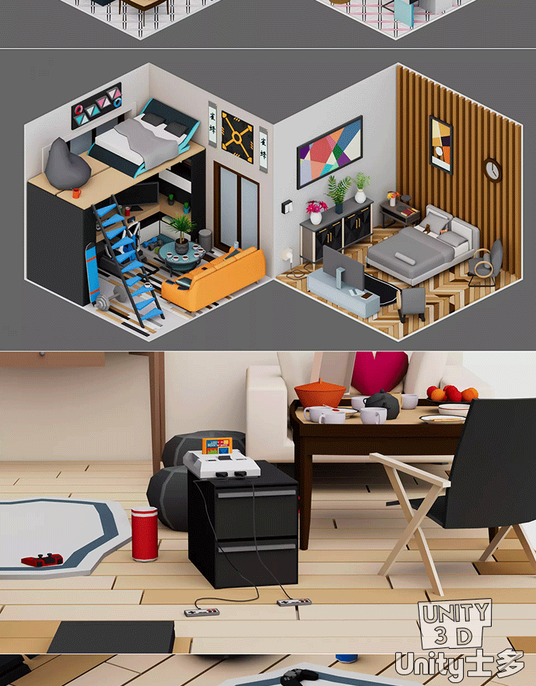 Unity3D低面卡通房间场景模型Low Poly 30 Rooms Interiors [1.0]