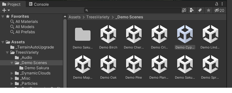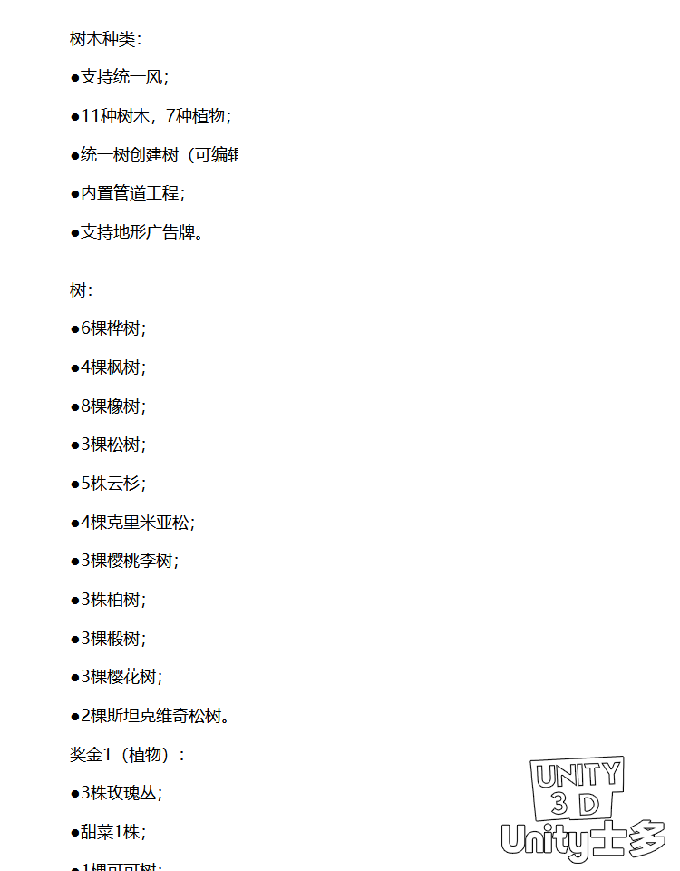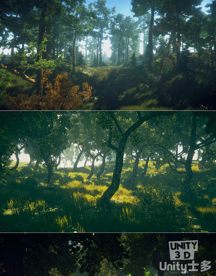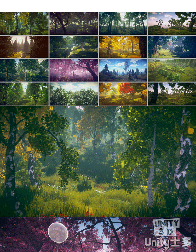 Unity森林树林枫树橡树松树樱花树桦树柏树U3D场景Trees Variety