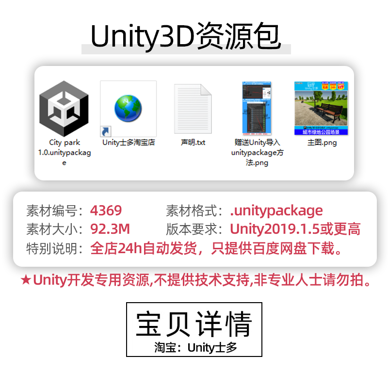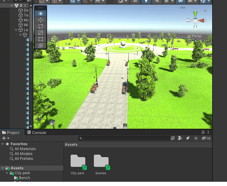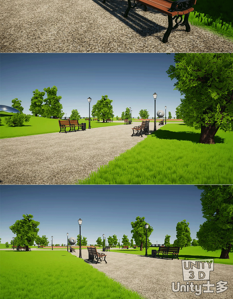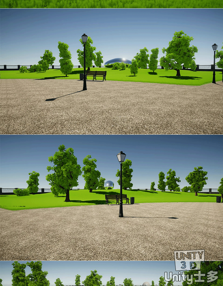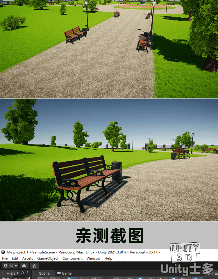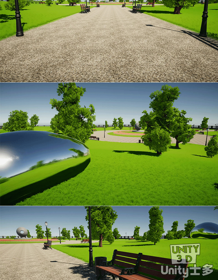 Unity城市绿草地公园场景U3D树木植物草坪长椅路灯City park 1.0