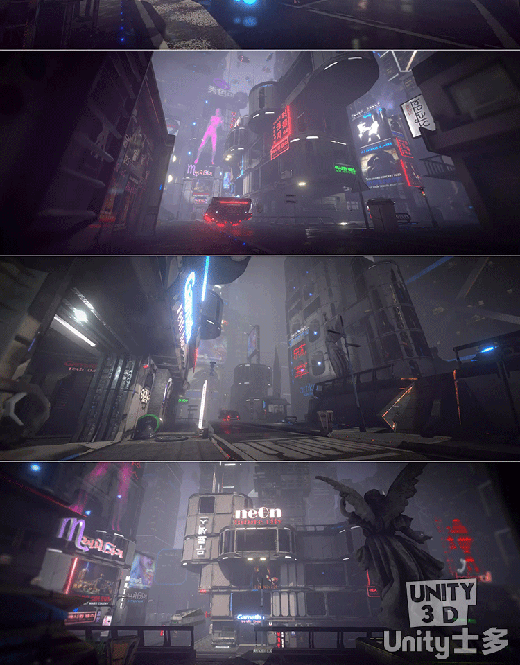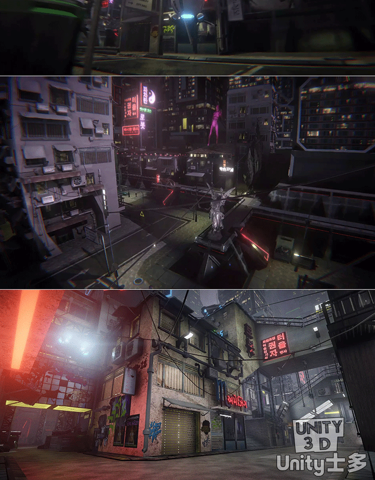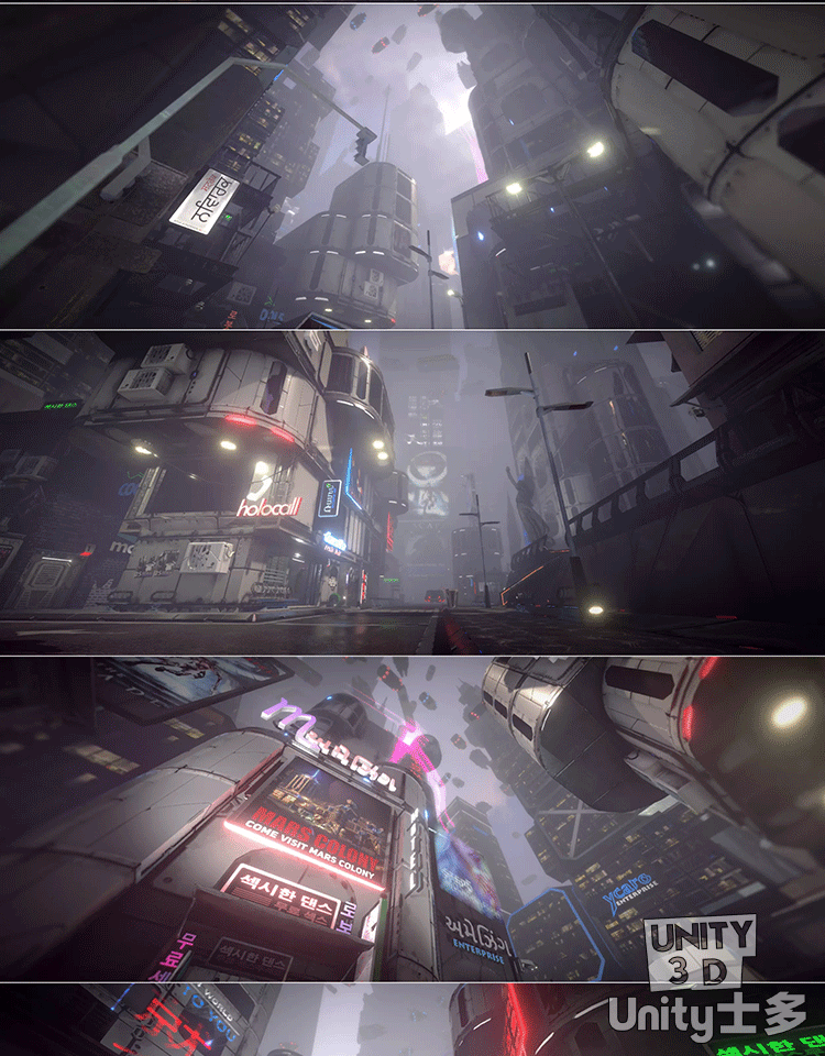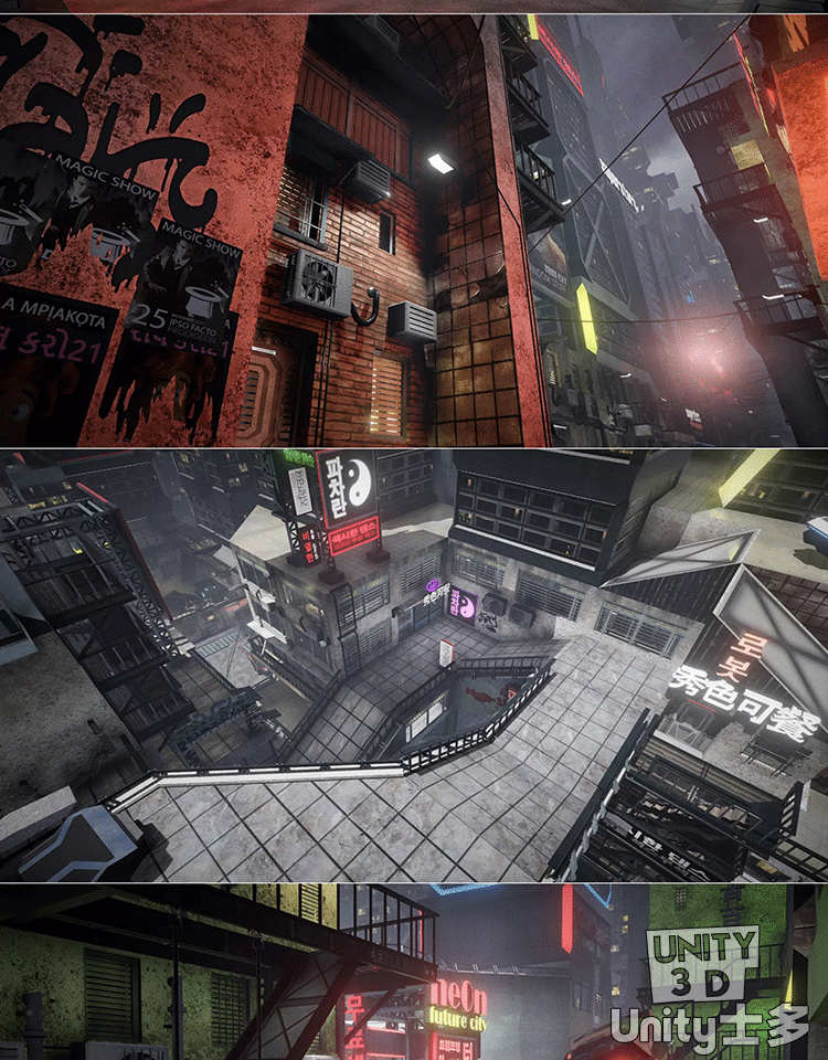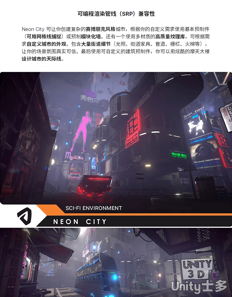 Unity3D科幻霓虹赛博朋克城市街道建筑场景SciFi Neon City 1.2.1