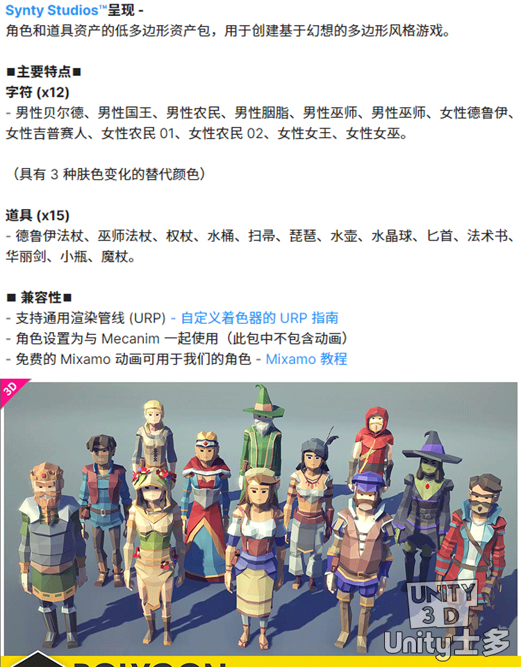Unity3D低面幻想人物角色POLYGON MINI Fantasy Characters Pack
