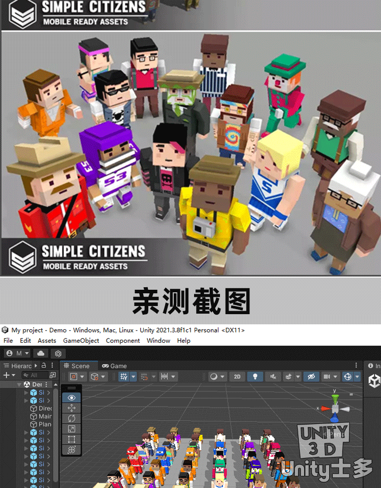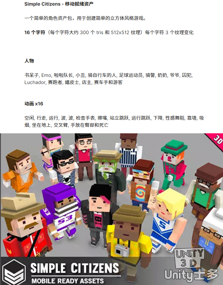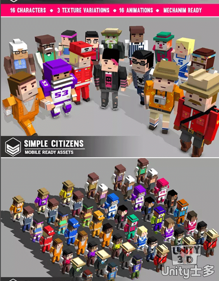 Unity3D卡通像素风格市民人物角色U3D模型带动画Simple Citizens