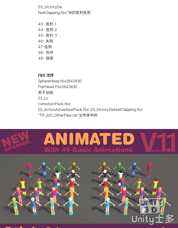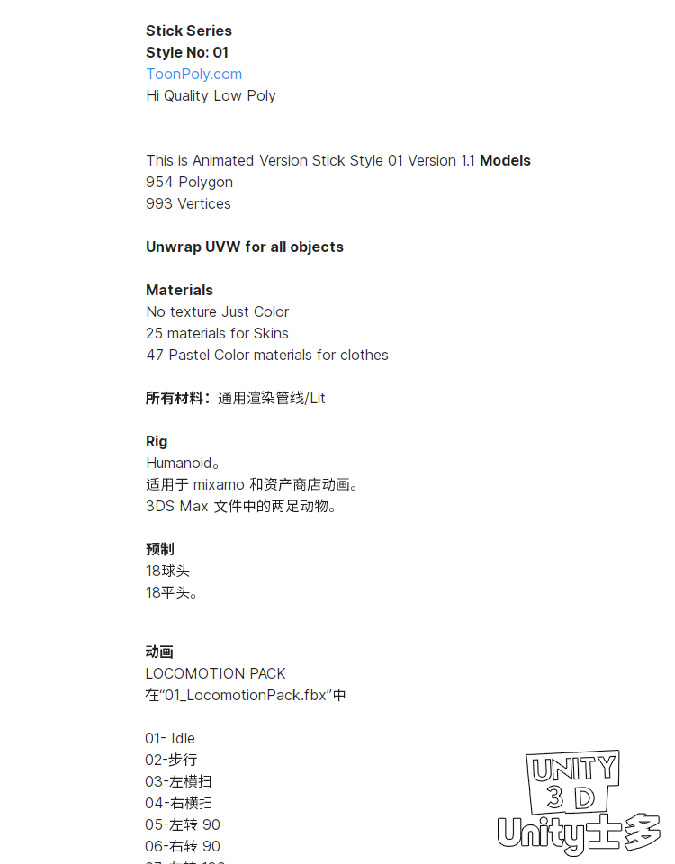Unity3D火柴棍人物U3D动画Stick Style 01 Animated Version v1.1