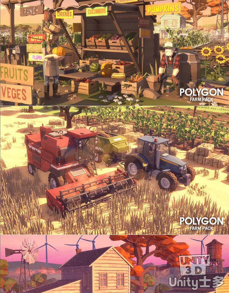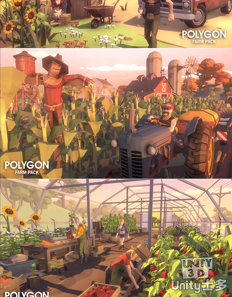 Unity农场仓库建筑收割机U3D向日葵农作物农民POLYGON Farm Pack