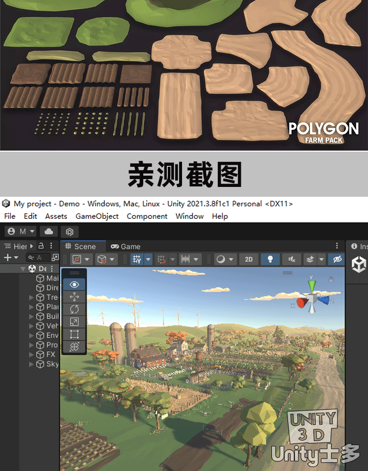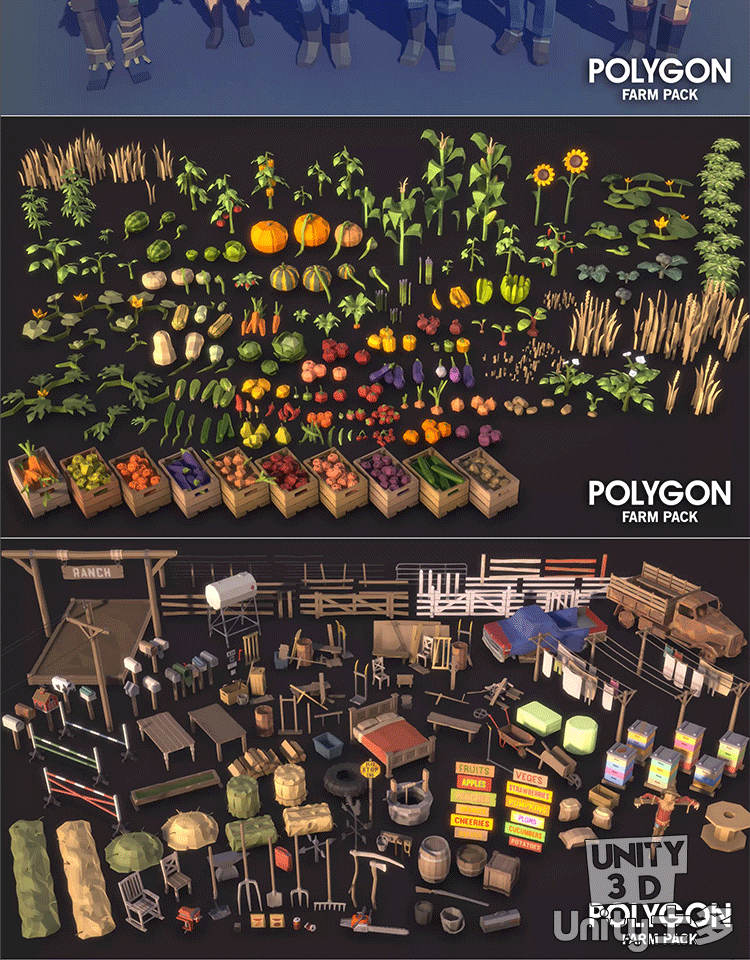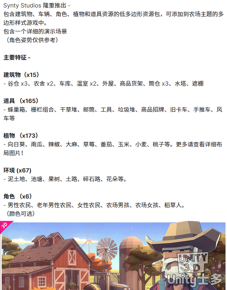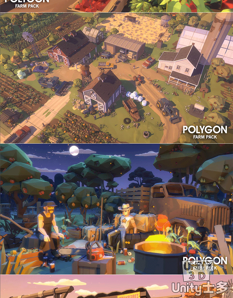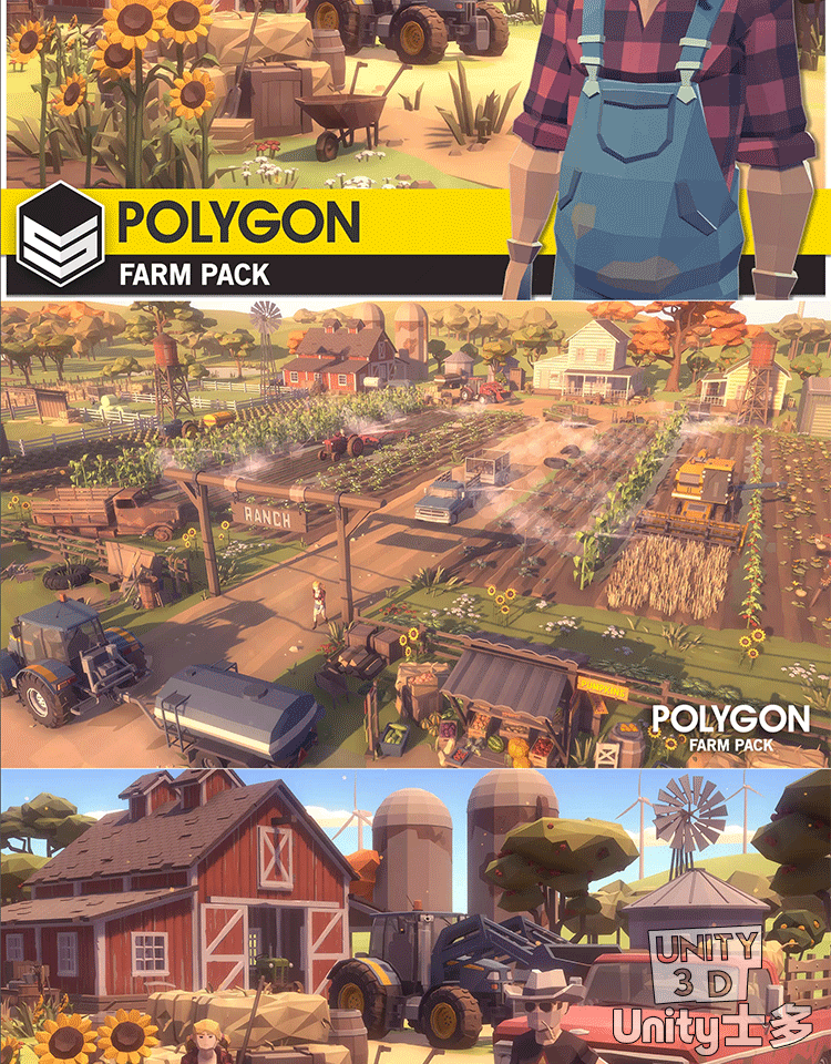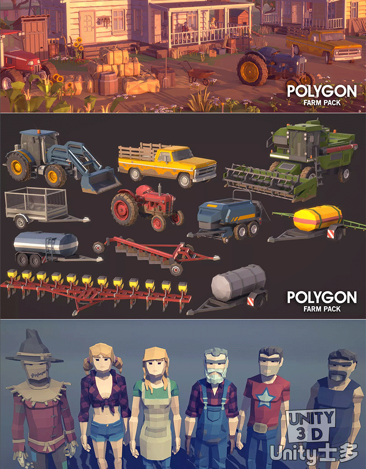 Unity低面lowpoly农场村庄建筑机械动物农民农作物资产包FarmLife