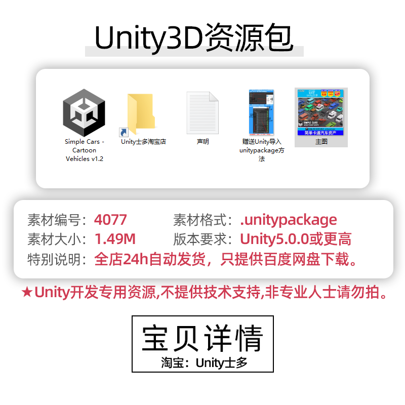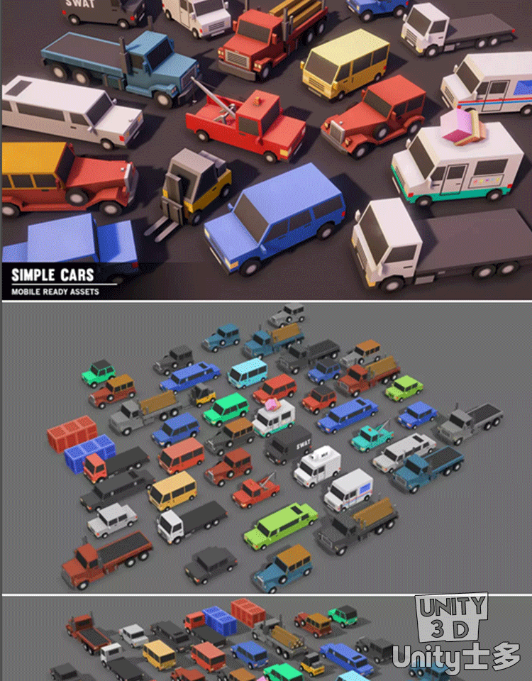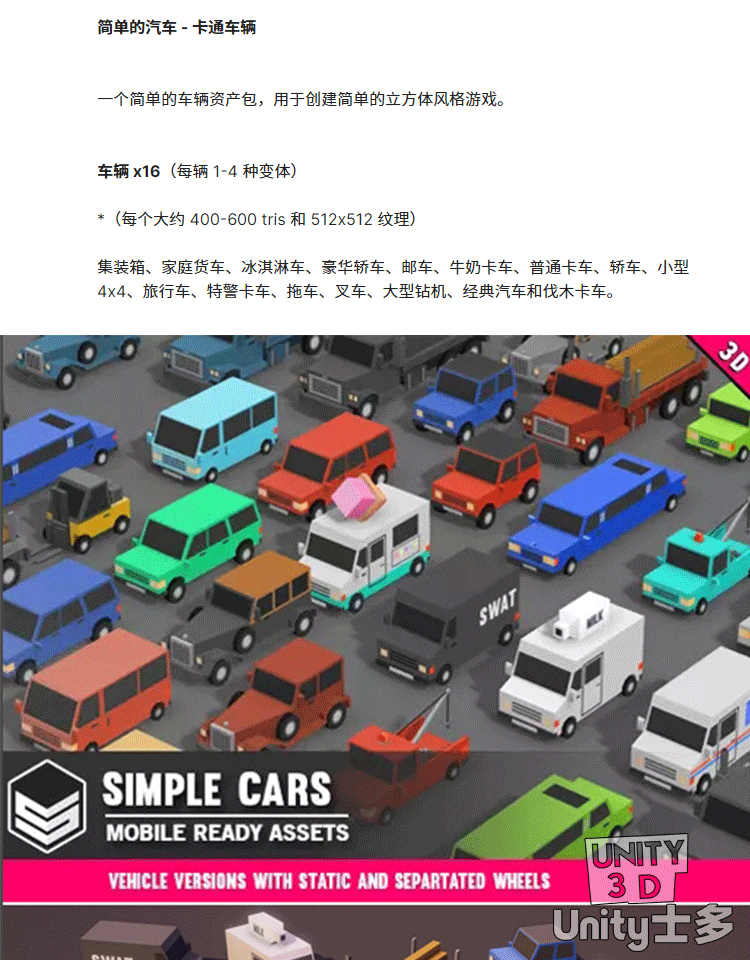 Unity3D简单低面像素卡通汽车U3D货车卡车车辆模型Simple Cars