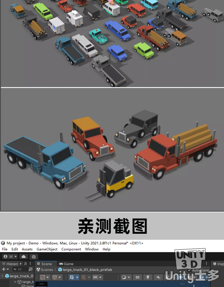Unity低面卡通汽车U3D模型公交车赛车Low Poly Cars 80 Cars 1.6