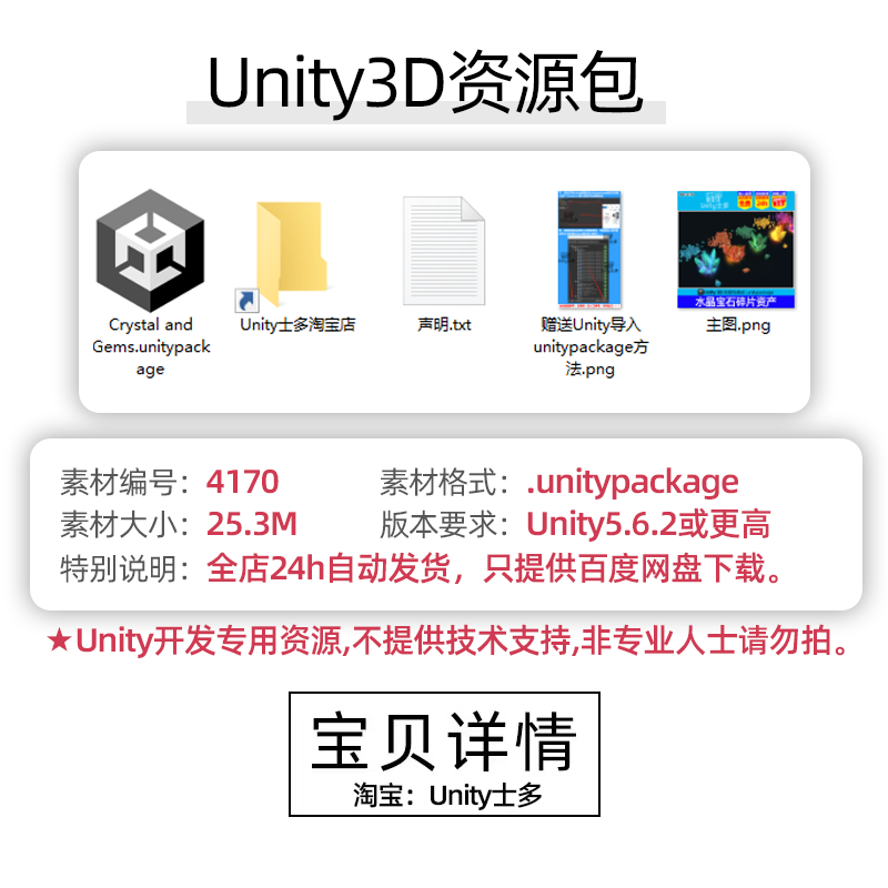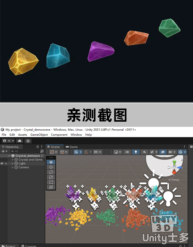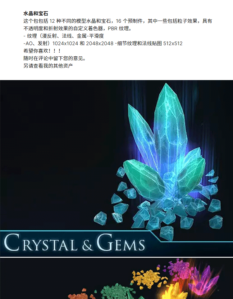 Unity3D水晶宝石PBR模型U3D粒子特效素材Crystal and Gems