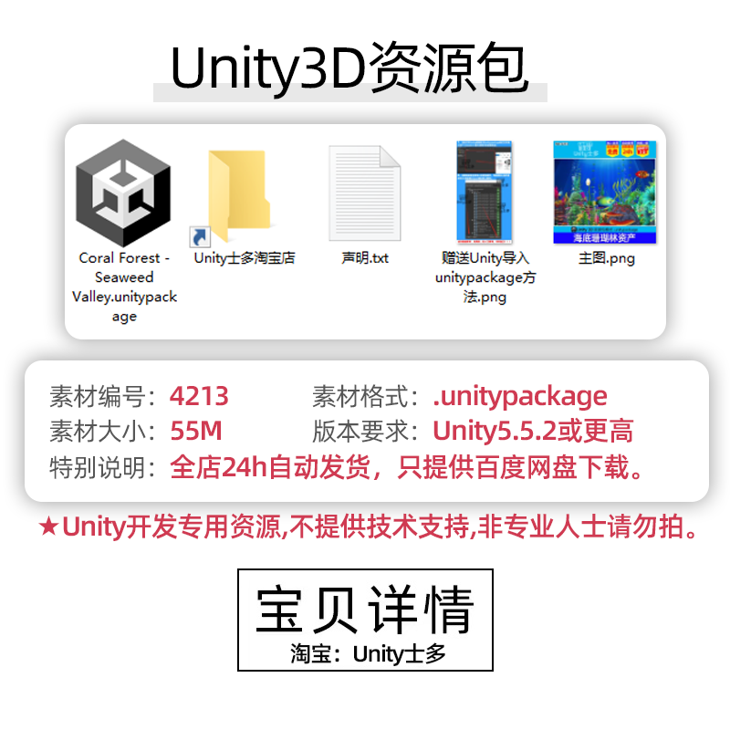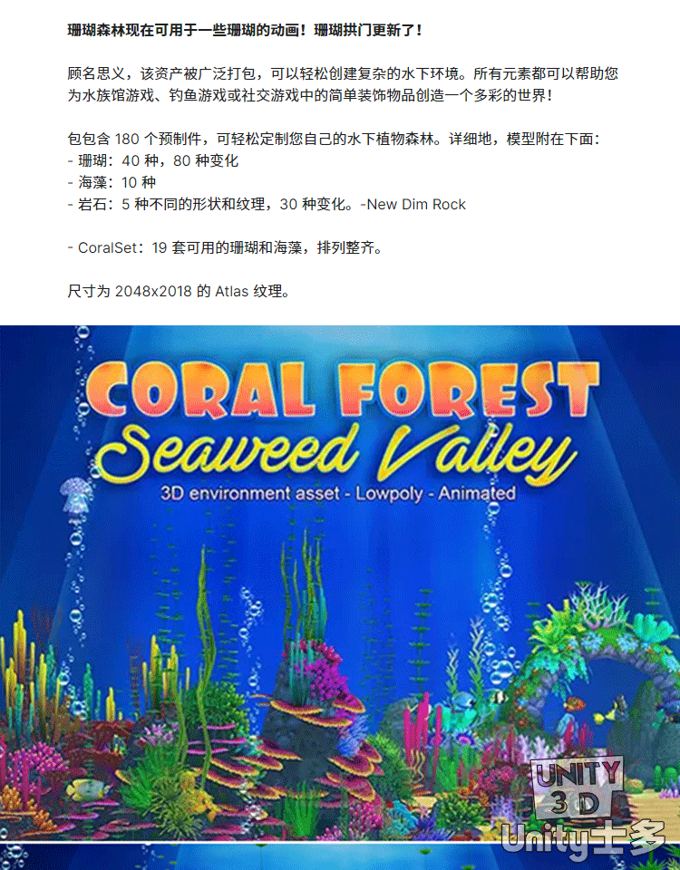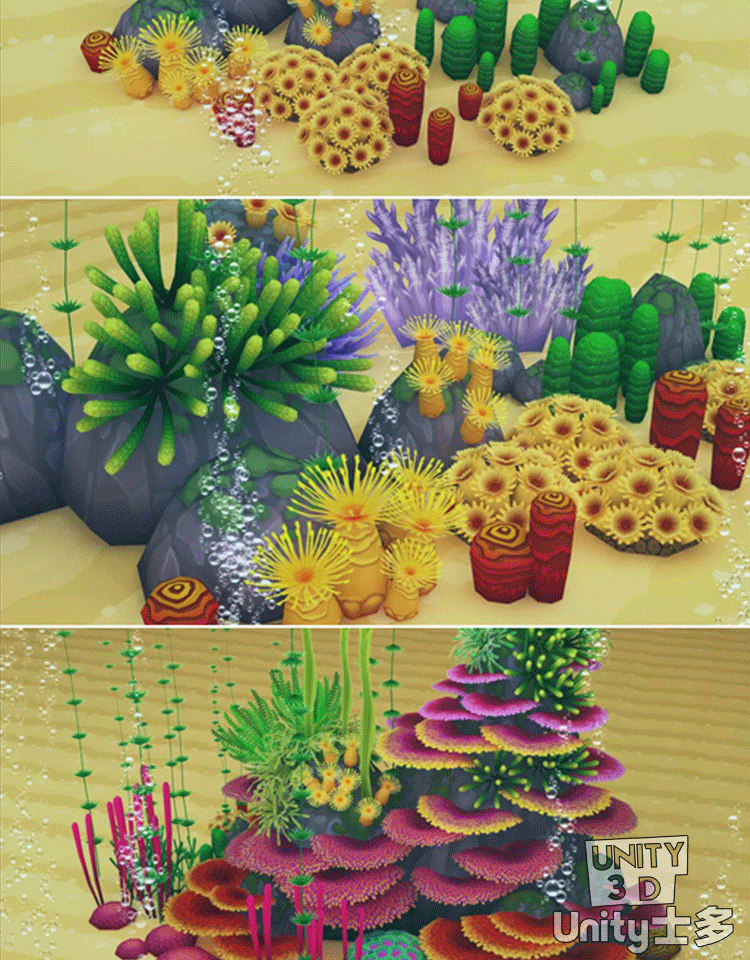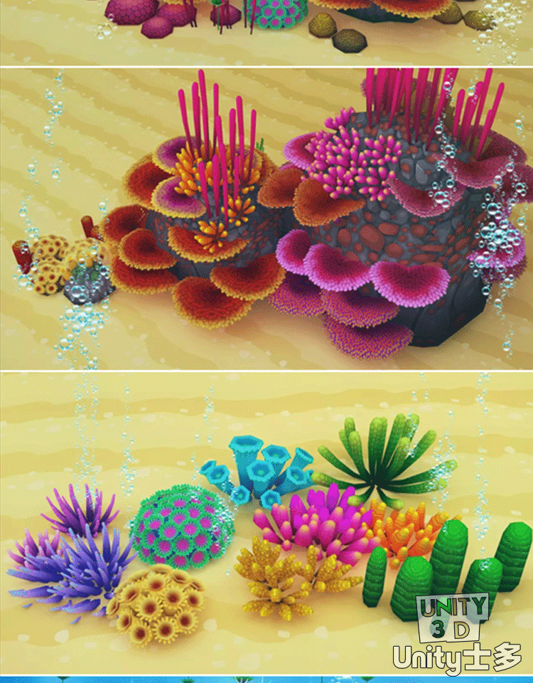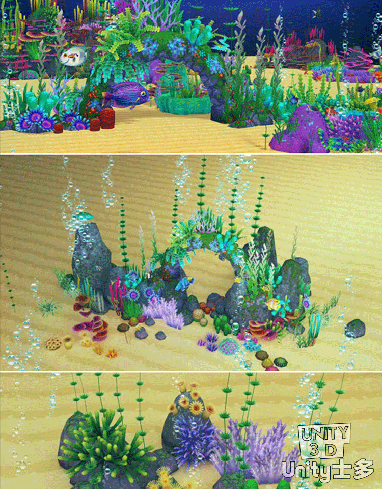 Unity3D水下海底环境珊瑚水草海藻岩石模型U3D资产Seaweed Valley