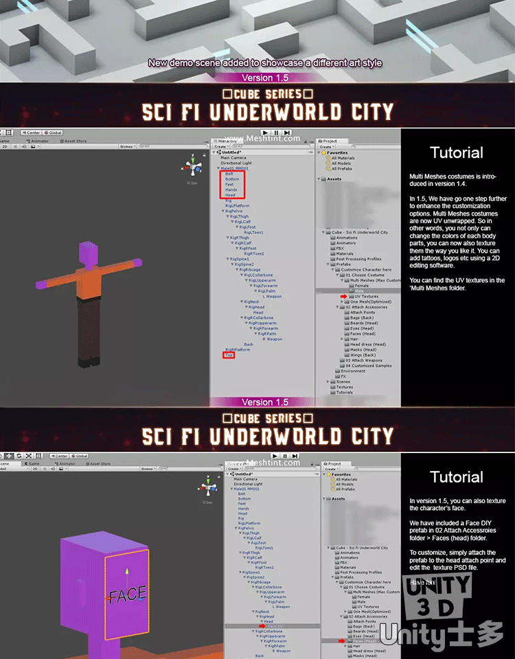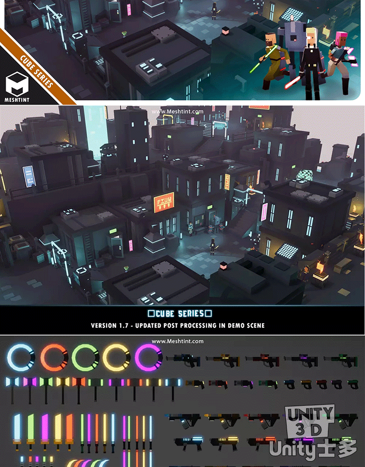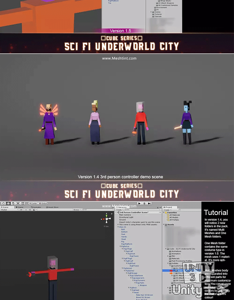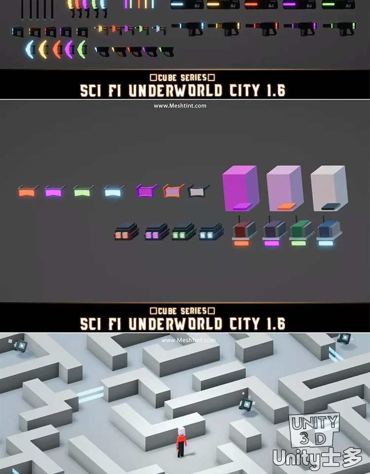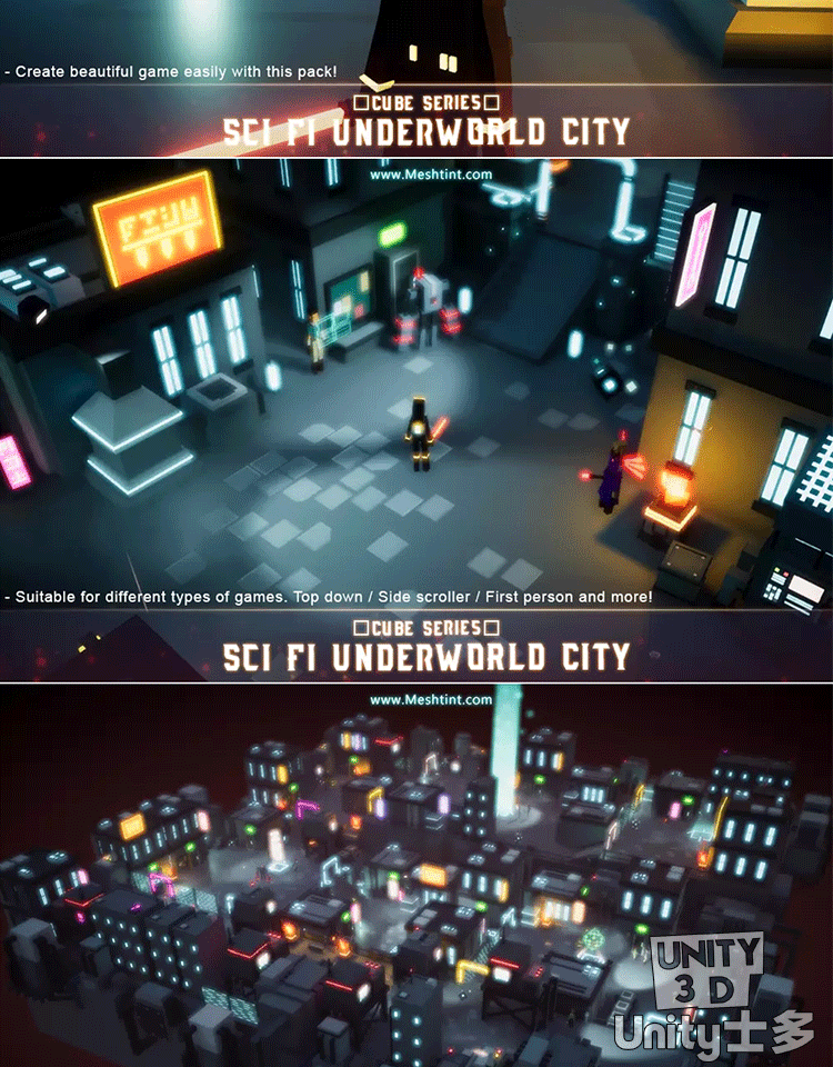 Unity科幻暗黑城市地下城角色道具武器服饰Underworld City Pack