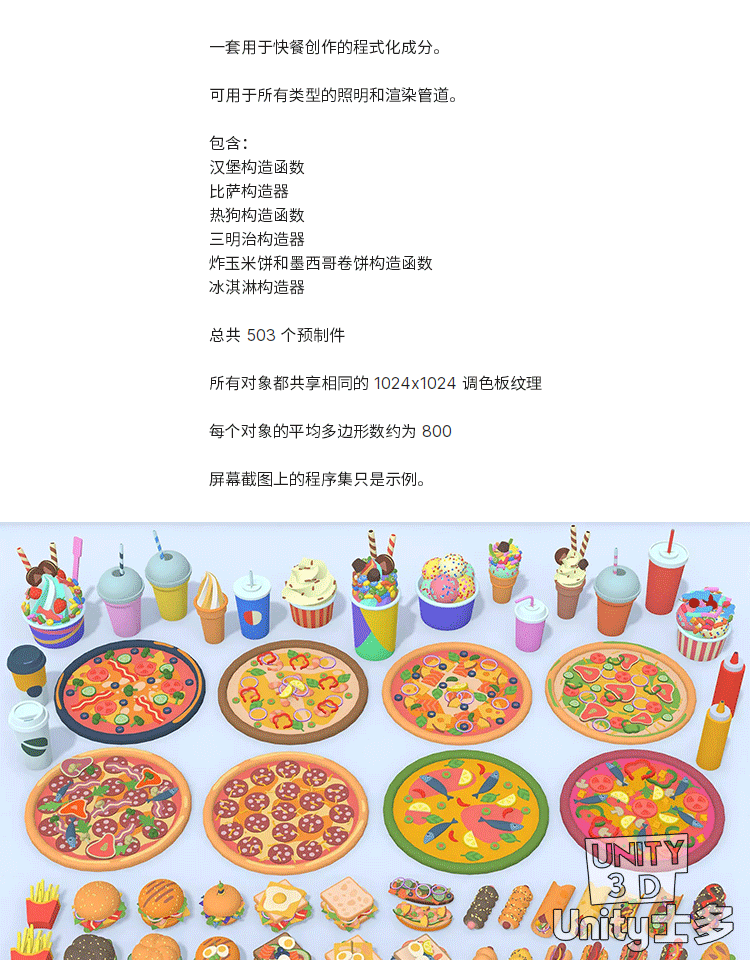 Unity卡通快餐食物披萨饮料模型Fast Food Mega Constructor 1.0
