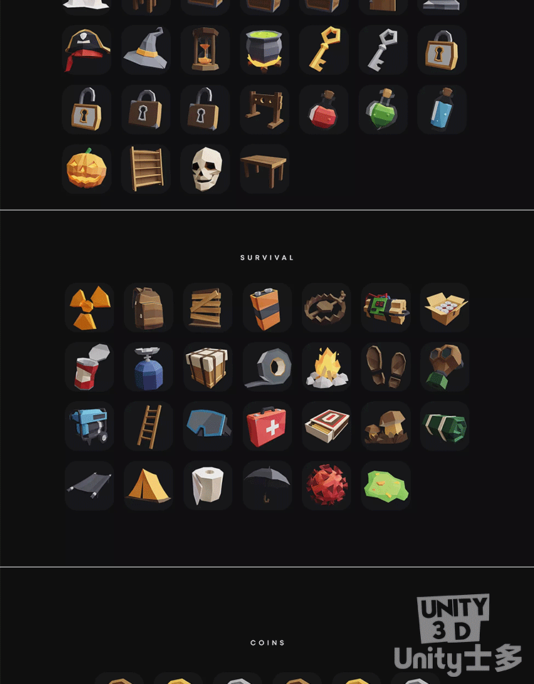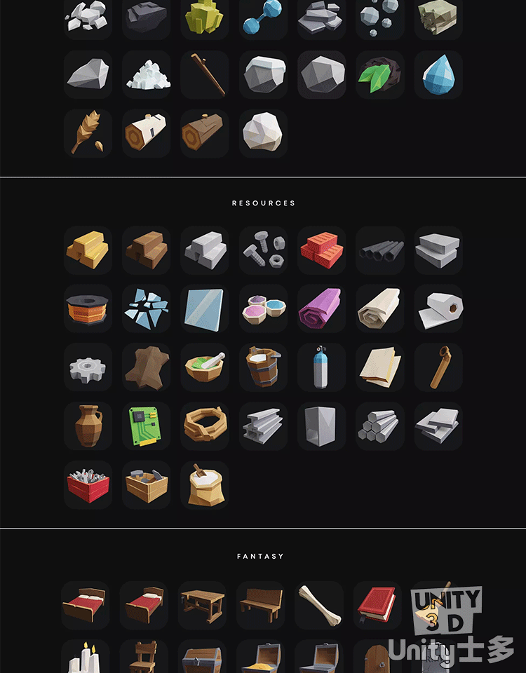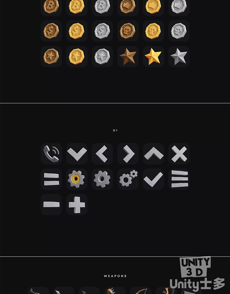 Unity3D多边形风游戏场景图标角色道具U3DPOLYGON Prototype Pack