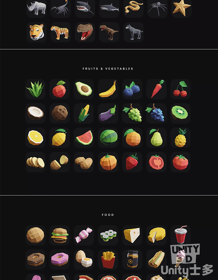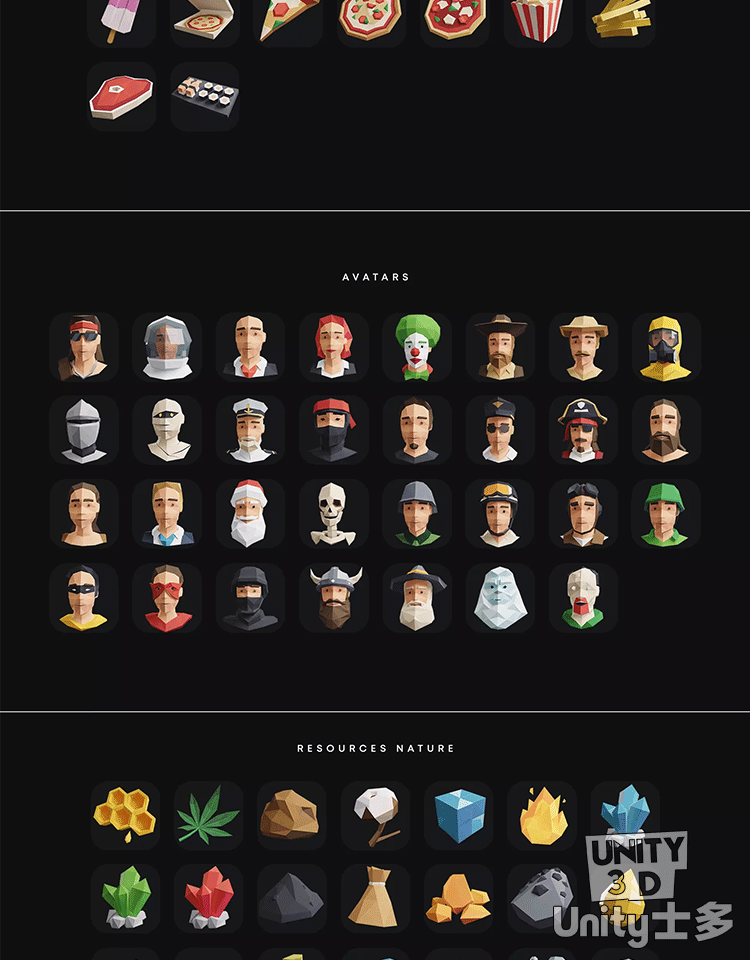 Unity低多边形2D游戏UI图标水果头像道具Low Poly Icon Pack 2.1