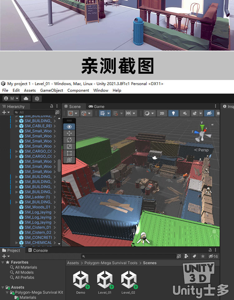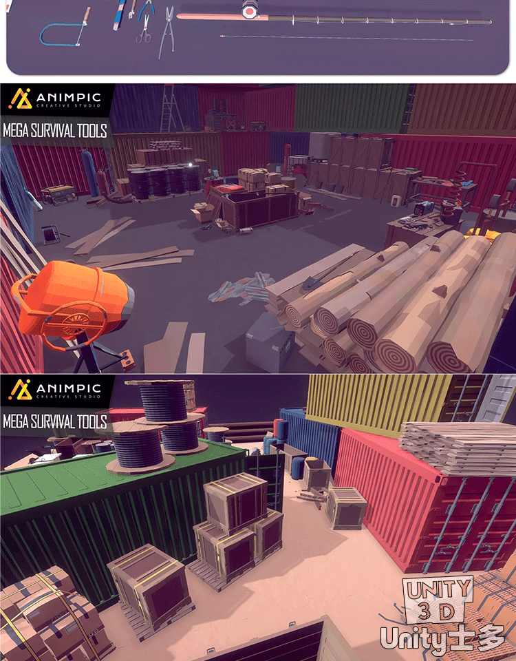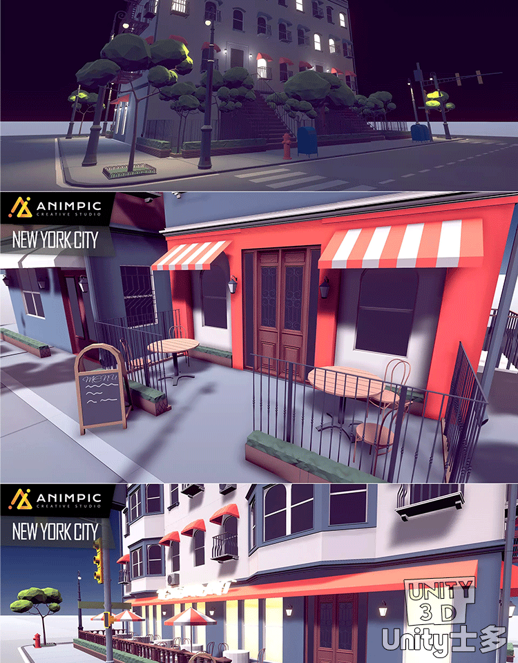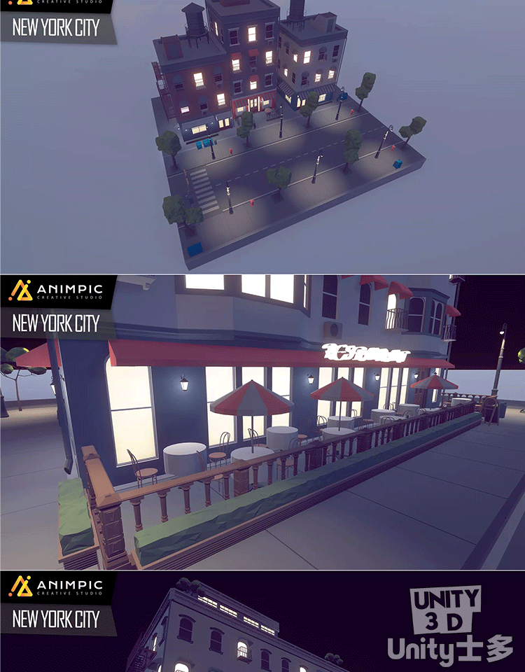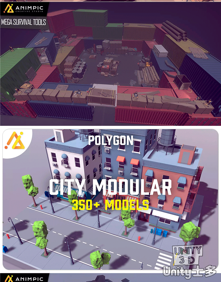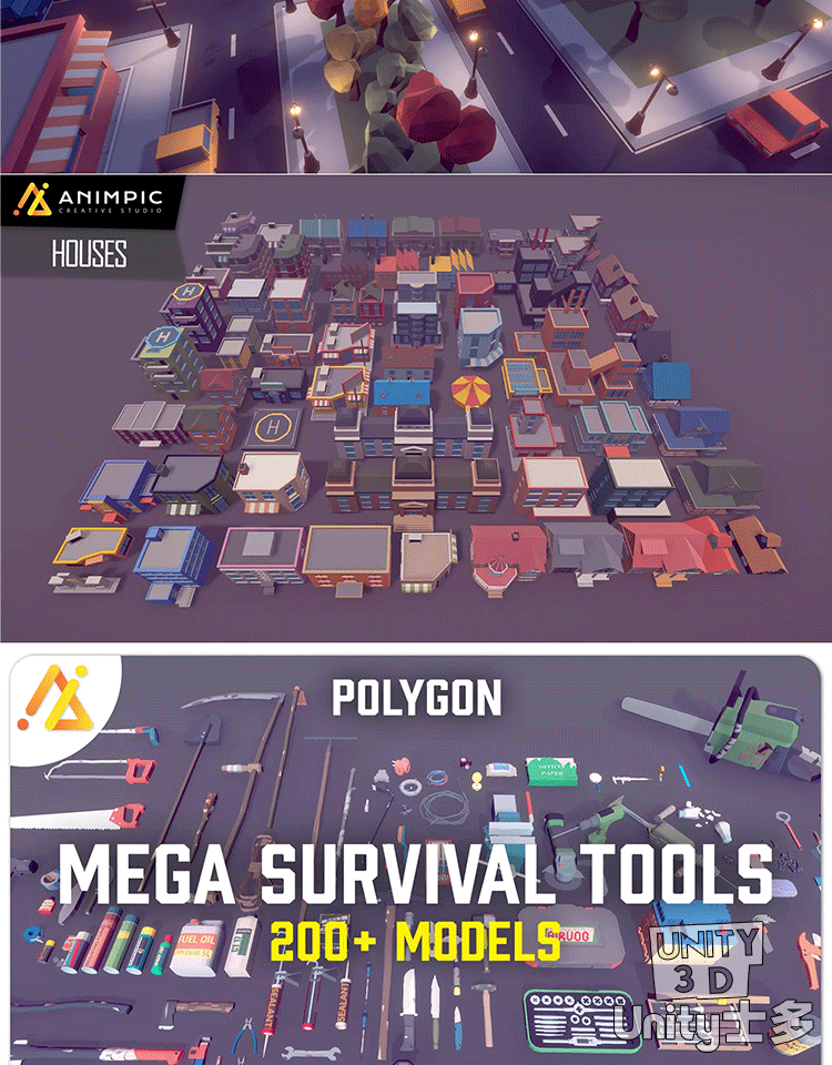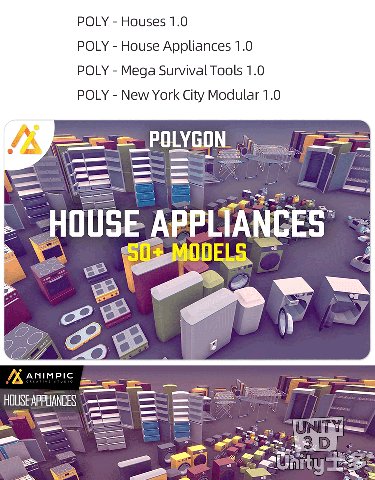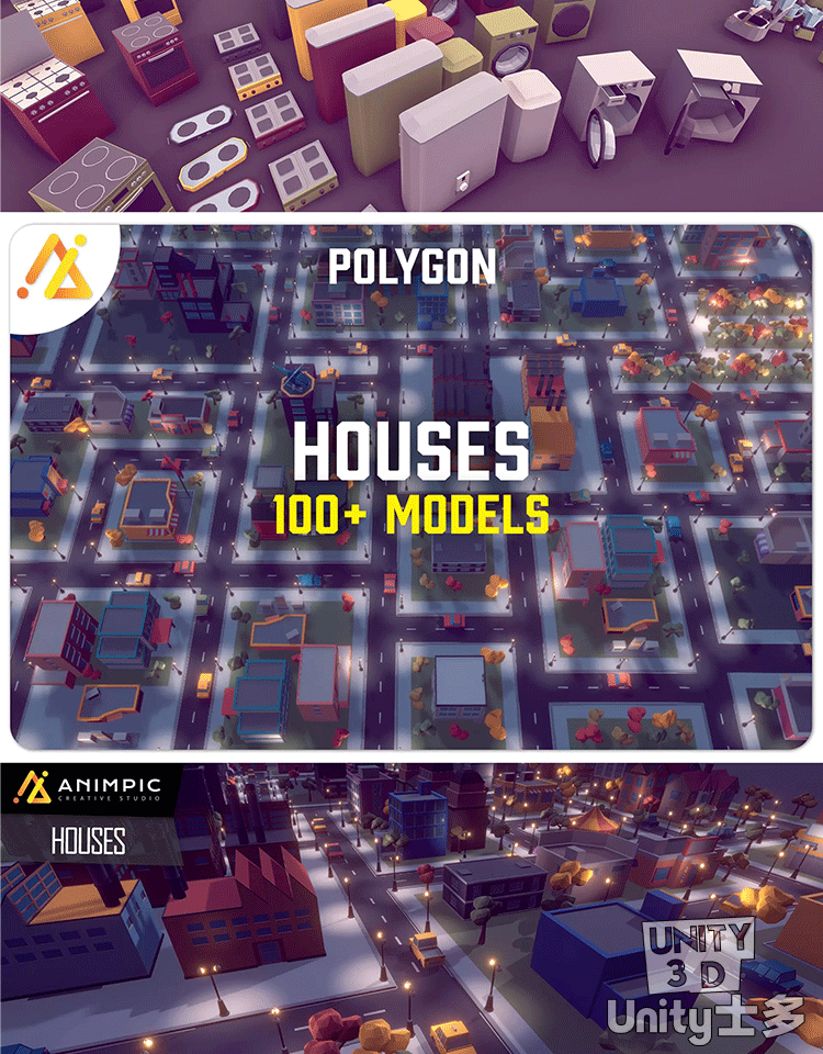 Unity3D低多边形城市社区建筑商店场景low poly家具家电工具道具