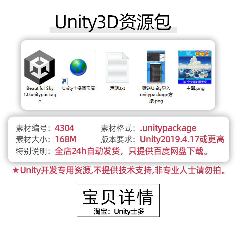 Unity卡通风格化天空盒子白天蓝天夜晚晴天多云Beautiful Sky 1.0
