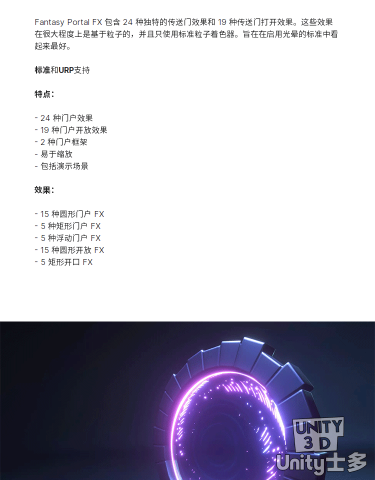 Unity3D科幻传送门打开效果特效粒子素材Fantasy Portal FX 1.0